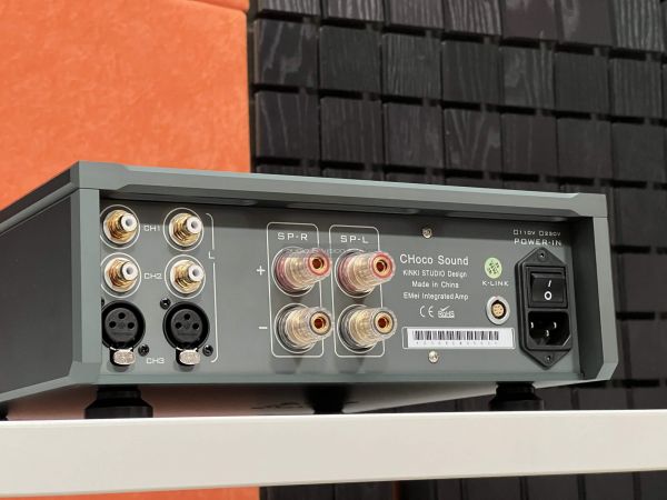 A CHoco Sound minőségi hangfalcsatlakozókat, 2 pár RCA és egy pár XLR bemenetet nyújt, amelyek mellett elfért a hálózati aljzat és a fő tápkapcsoló is, továbbá a K-link segítségével csak egy dedikált kábelre van szükségünk további Kinki Studio komponensek párosításához.