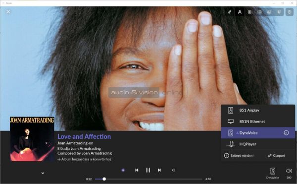 A beüzemelés egyszerű, drivert nem kell hozzá telepíteni, a Roon és Jriver egyből felismerte és használatba vette, mint USB eszközt, bedugjuk a hangfalkábeleket, a mellékelt USB kábelt, a tápegység csatlakozóját és megy.