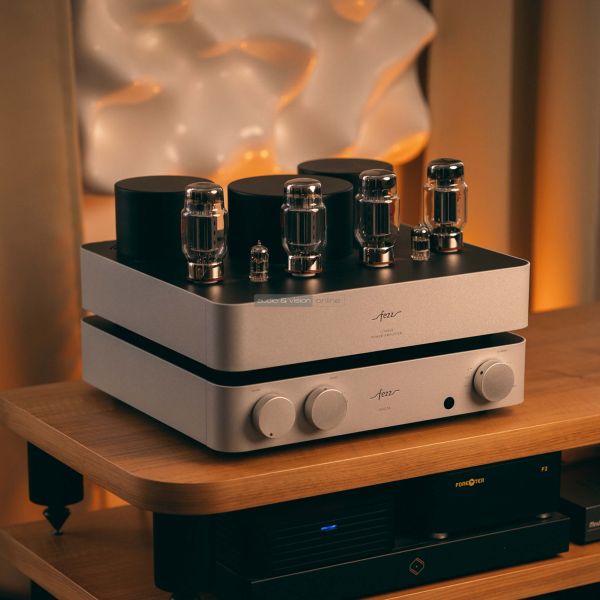A Fezz Audio név már ismerősnek számít az AV-Online olvasói számára, mint a csöves technológia jó hírét keltő gyártó. Az eddig tesztelt gyártmányaikban nem nagyon találtunk kifogásolni valót hangilag és az árazása sem elérhetetlenül elszállt (már persze más, nevesebb gyártóval összevetve). A sorozat egyik ékköve az EVO Titania, mégpedig KT88 csövekkel, amikkel már jókora teljesítményt, 2x45 wattot lehet előcsalogatni az erősítőből, így széles körben használhatóvá teszi ezt a típust. Kaptunk mellé egy Sagita névre keresztelt előerősítőt is (mivel a Titania csak egy végfok) ami bőségesen el van látva bemeneti csatlakozókkal, sőt még egy szubládát is rá lehet kötni, ugyanis két változtatható színtű RCA kimenete van.