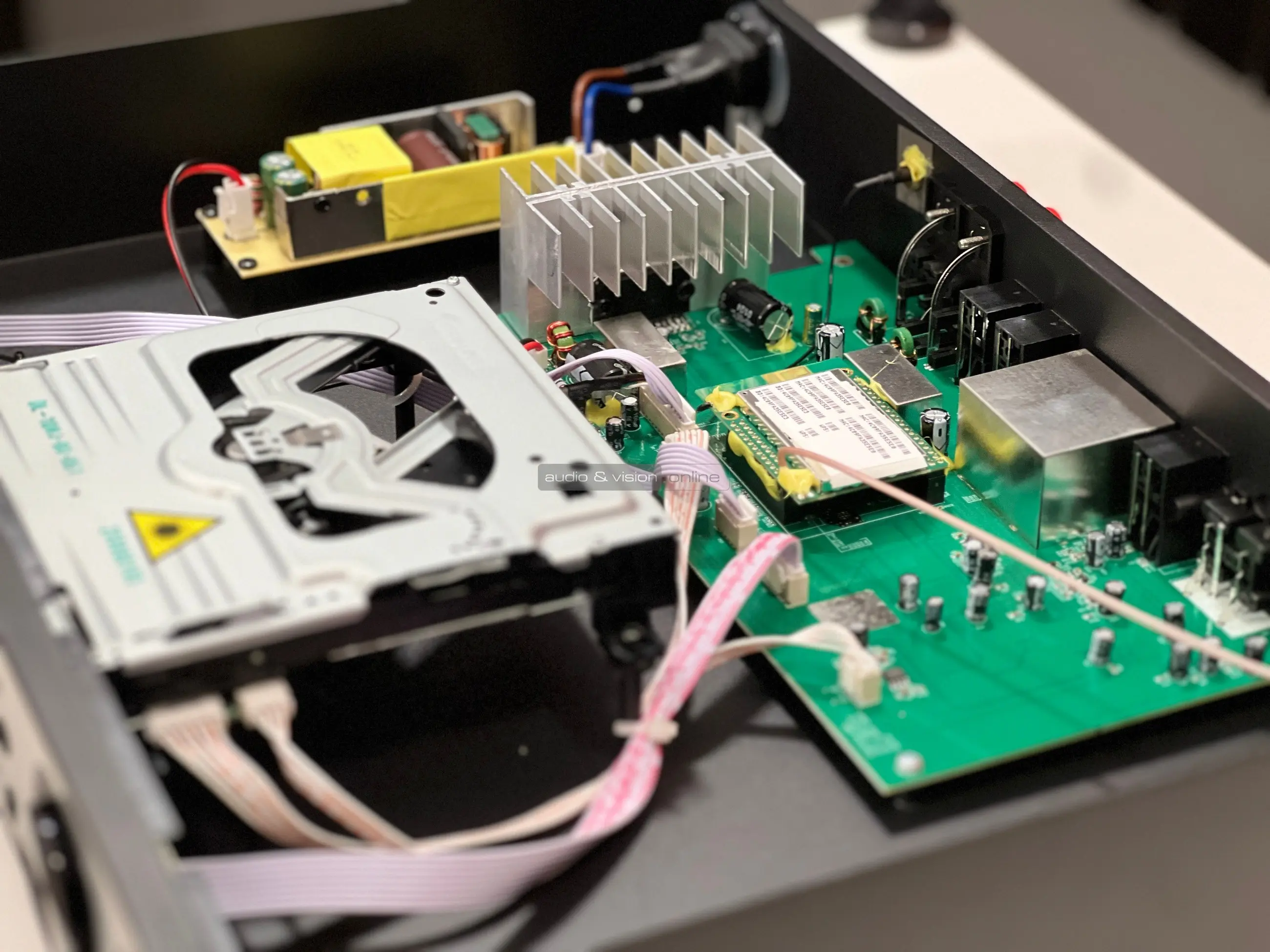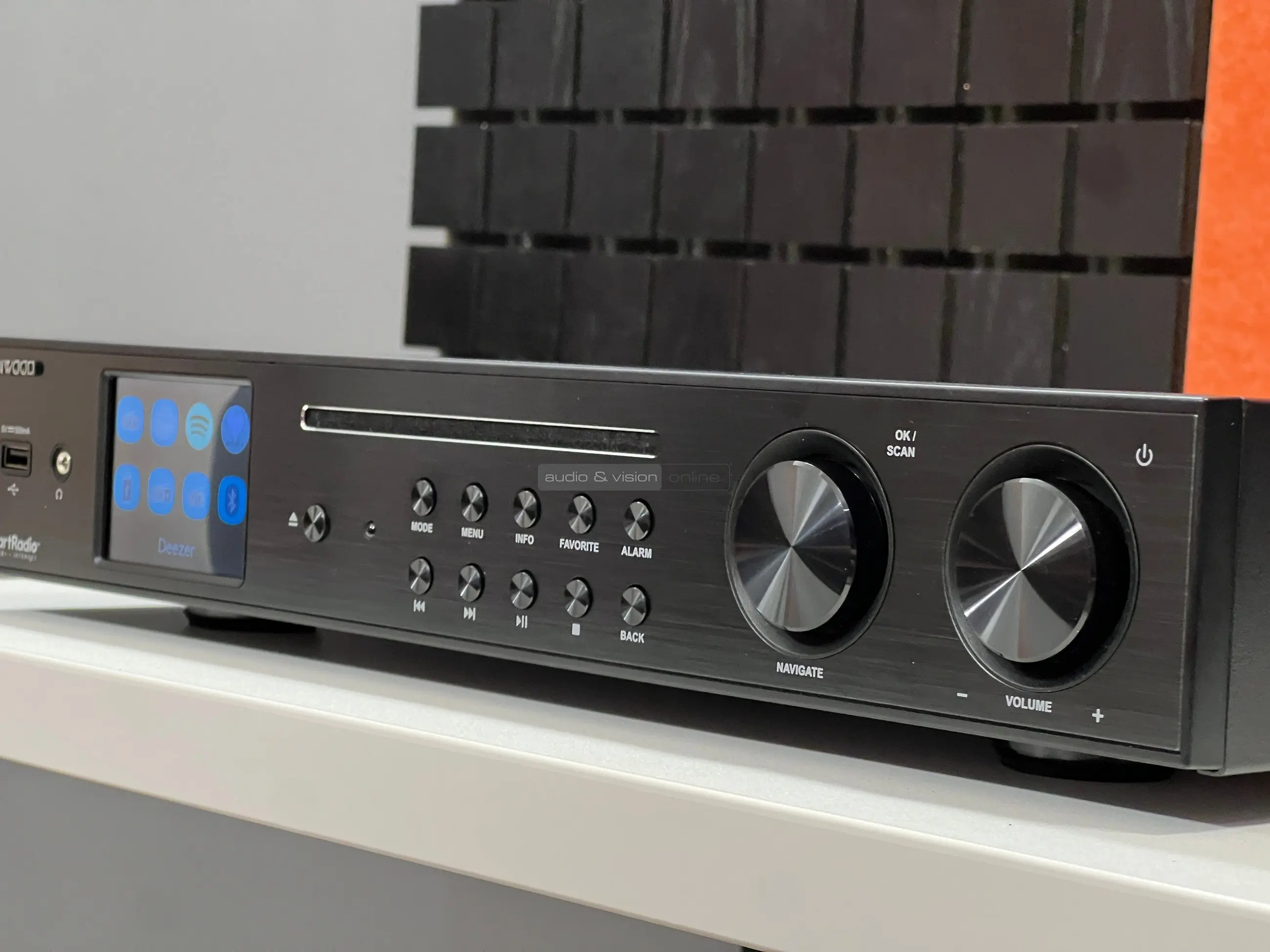 Tőlük balra egy 3,2 colos színes TFT kijelző van, mellette 3,5 mm-es Jack fejhallgató kimenet, valamint egy USB-A a külső adathordozó tartalmának lejátszásához. Nem komplikált az egész, az elrendezés teljesen felhasználóbarát, és jó dolog, hogy szinte minden elérhető innen. Persze a komfortot távvezérlő biztosítja, ami megfelelő méretű, a gombok logikusan vannak szeparálva, tehát nem lesz időigényes megbarátkozni vele.