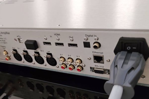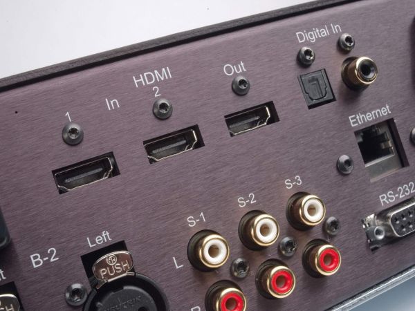 A készülék hátulján találjuk a további digitális csatlakozókat: a már említett Ethernet mellett optikai, USB-B, koaxiális digitális, valamint három HDMI 2.0a aljzatot is találunk, ezekből két be és egy kimenet. Így tv, vagy filmnézés esetén is biztosíthatjuk a kiváló megszólalást, ez a megoldás kifejezetten ritkának mondható a high end kategóriában (is). Ugyanakkor azzal kapcsolatban nincs információ, hogy ezek a HDMI be- és kimenetek csupán sztereó, vagy akár soksávos házimozi hangzás átvitelére, esetleg csatornánkénti bontására is alkalmasak-e vagy nem.