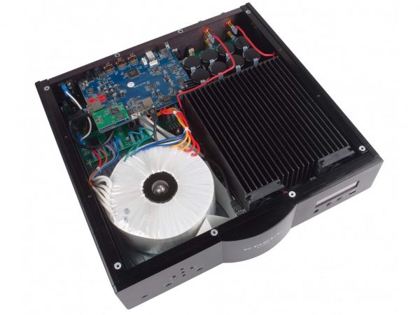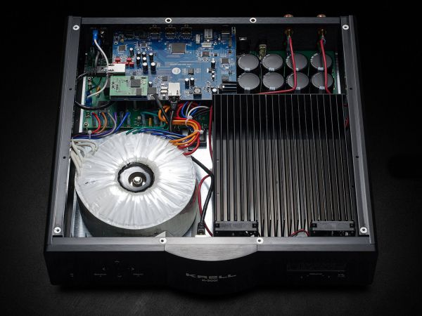 A beltartalmat tekintve komoly felépítést láthatunk: a hatalmas toroid trafó 770 VA-es, a kondenzátorok 80,000 μF kapacitással bírnak, a kialakítás a cég saját, Krell Current Mode topológiája szerint készült, és extrém lineáris, széles frekvenciamenetet, könnyed magashangokat és dinamikus basszus megszólalást ígér. Az erősítő teljesítménye 150 W csatornánként 8 ohmon, így szükségesnek tűnik a komoly tápellátás.