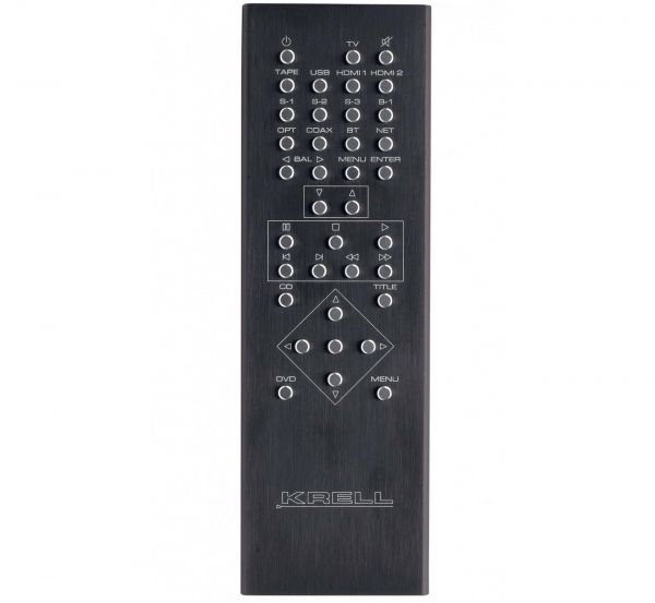 És ami a legnagyobb meglepetés eddig: a távirányító. Ilyen komolyan kidolgozott, remek minőségű példánnyal még a high end kategóriában is ritkán találkozunk. A háza fém, gombjai is alumíniumból készültek, hihetetlenül robusztus, masszív darab, fél kilogramm körüli tömeggel. Minden elismerésünk a Krellnek, amiért nem állt be a sorba a legtöbb gyártó mellé és adott filléres, fröccsöntött műanyagból készült vacak távkapcsolót a K-300i mellé. Efeletti örömünk nem maradéktalan, mert a gombok elrendezése szokatlan, de idővel megszokható.