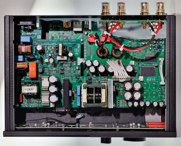 A Lyngdorf Audio megoldása olyan, mint egy mini hálózatos erősítő luxuskivitelben. A D osztályt teljesen digitális jelfeldolgozással egészíti ki. A hangsugárzókat a szobaakusztikai hiányosságok figyelembevételével kompenzálja és hajtja. Mindehhez példaértékű telefonos vezérlés (részletesen később) társul. És valahogy pont a modern igényeket kimerítő bemeneteket vonultatja fel. A stréber mindenit!