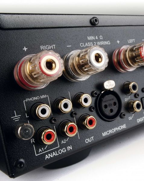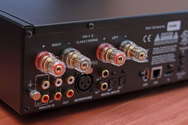 A hátoldal összeállítása már önmagában intelligens. Egyetlen ARC-képes HDMI aljzat, mert egy sztereó erősítőnél már ez önmagában sok problémát megold. Trigger ki- és bemenetek, igen, jól jöhetnek. Kettős koaxiális és kettős optikai aljzat, hogy a set-top box és/vagy CD-lejátszó mellett tuti, ami ziher, még maradjon hely későbbre is. És mi van az analóg szerelmeseivel, a hanglemez gyűjtőkkel? Rájuk külön gondoltak a fejlesztők, hiszen földelt phono RCA aljzattal készült a kis vas, digitális topológia ide vagy oda. De mi van, ha a 2x60 W teljesítmény, vagy a hozzá társított kompakt hangfal kevés energiát nyújt majd a zenehallgatásra szánt térben? Igen, leginkább ezért kerülhetett hátra a vonalszintű analóg RCA kimenet is, hogy később bármikor kiegészíthető legyen a rendszer egy vagy két mélyládával. Nem. Egyszerűen nem tudunk (ki)fogást találni.