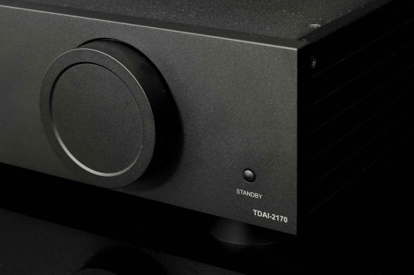 Az átlagfelhasználót bizonyára sokkal jobban érdekli, hogy (a jó hangon kívül) milyen gyakorlati előnyöket, szolgáltatásokat kap a pénzéért cserébe. A TDAI-2170 egy telivér high end sztereó erősítő, ami skandináv letisztultságán, monolit jellegű, masszív matt-fekete előlapjára tekintve is érzékelhető. Utóbbin az apró ki/bekapcsoló gomb szerényen a jobb alsó sarokban rejtőzik. A tekintetet mindössze egy középre igazított módválasztó tárcsa és egy szinte meghökkentően nagy jelszint vezérlő (hangerő szabályzó) potméter töri meg. Utóbbi külön említést érdemel. Csapágyas illesztésének köszönhetően elég csak ujjal megérinteni és határozottan megpörgetni, ezután forog tovább, ugyanilyen könnyedén meg is állítható. Közben alig hallható, egyenletes ciripeléssel jelzi a fokozatokat. Másnak ez miért nem jutott még eszébe?