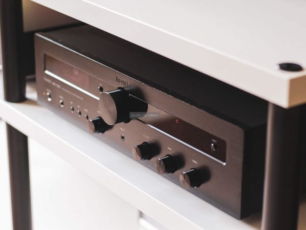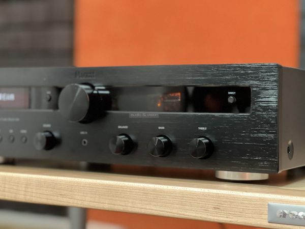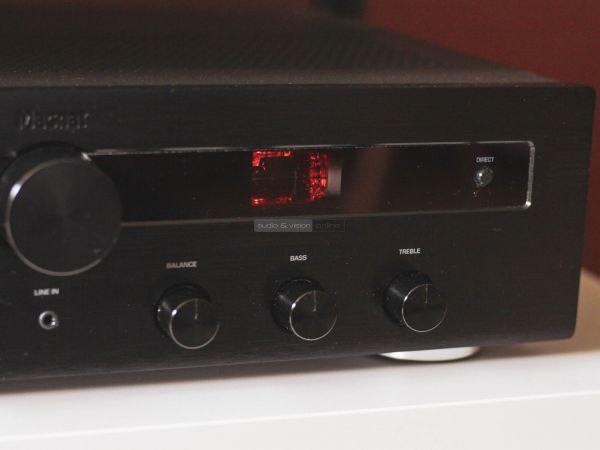 Az arculat komoly, de elsőre kicsit túlzsúfolt benyomást kelt. A könnyen forgatható jelszint vezérlő (vagy, ahogy sokan nevezik, hangerőszabályzó) alá 3,5 mm-es Jack bemenetet helyeztek. Itt-ott található még az előlapon kijelző sötétítő (DIM), tiszta hangzás aktiváló (DIRECT), előre-hátra léptető és monó kapcsológomb egyaránt. Ezeknek jó részét nyugodtan lehagyhatták volna, esetleg elrejtve a menüben, mert a távirányító is tartalmaz gombot minden funkcióhoz. De még mindig jobb, hogy adottak ilyen lehetőségek, minthogy egyáltalán nem lennének. Az előlapon 6,3 mm-es fejhallgató kimenet, és a manapság egyre ritkábban alkalmazott balansz, basszus és magas hangszínszabályzó hármasa is megtalálható.