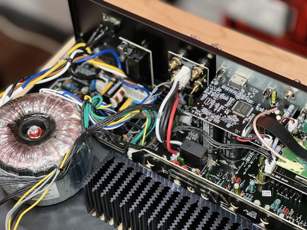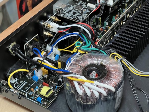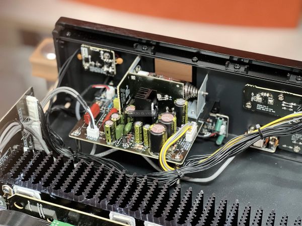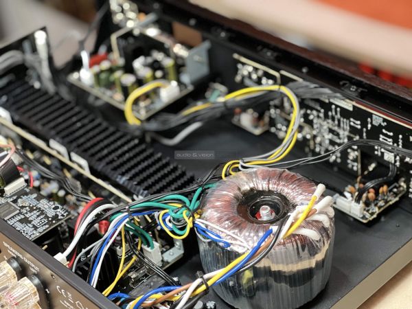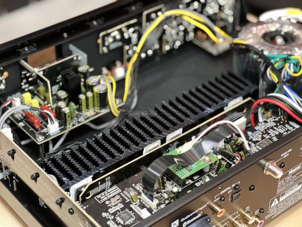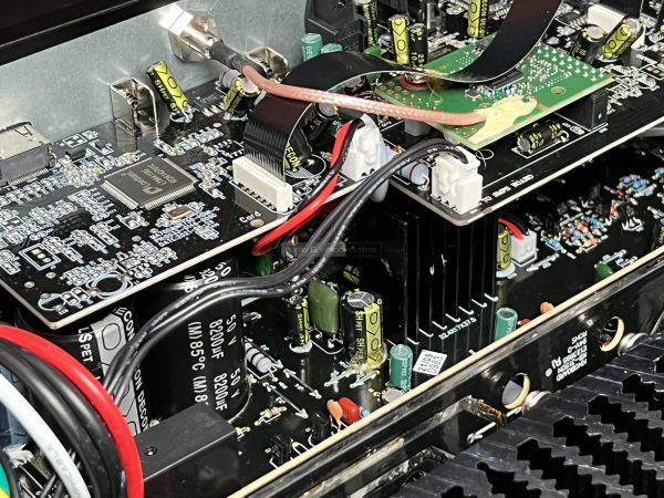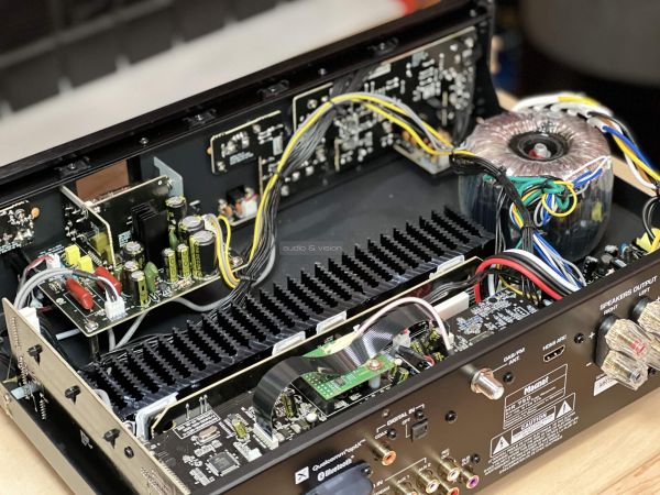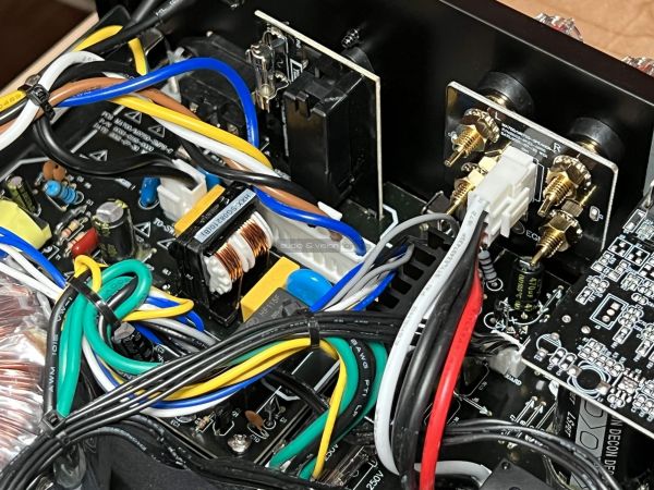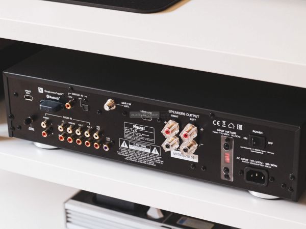 A tápaljzat hagyományos háromtűs IEC típus, hasznos azoknak, akik magasabb minőségű tápkábelt szánnának az erősítőhöz. A tápcsatlakozó fölé egy főkapcsolót helyeztek, a HDMI és az optikai bemenet között félúton egy DAB/FM antenna aljzat is található.