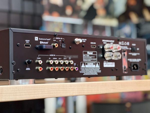 A hátsó oldal rendezett, ugyanakkor csatlakozók gazdag kínálatát tartalmazza. Szinte magától értetődő, hogy adott egy phono bemenet, további négy RCA bemenet társaságában. Hangkimenetből sztereó REC OUT és aktív mélysugárzónak fenntartott SUB OUT közül lehet választani.