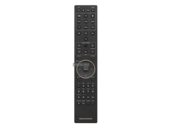 Mi ennek a hozzáállásnak szívből örülünk, hiszen gondolatban visszakanyarodhatunk vele 20-25 évet, amikor az előadás volt a fontos és semmi más, a jelforrás külön testben kapott szerepet, mint ebben az esetben is. A MODEL 50-re jó ránézni, ebben a méretben is remekül mutat a Marantz új dizájnja. Az előlap egyértelmű és lényegében klasszikus, mert a hangerővezérlő és bemenetválasztó tárcsák közé kerültek a hangszínszabályzók, valamint a hangfalválasztó, hiszen azokból "marantzosan" most is két párat köthetünk. Szerencsére 6,3 mm-es Jack kimenet is van a fejhallgatónknak, valamint kör alakú OLED kijelző, ami elég informatív, hiszen a tekerőgombokon nincs vájat vagy LED az aktuális állást nyomon követni. Szerencsére a távvezérlő megegyezik a lejátszóéval, tehát univerzális, nagyon kézre áll, és a sok gomb ellenére könnyű eligazodni rajta a logikus elrendezésnek hála.