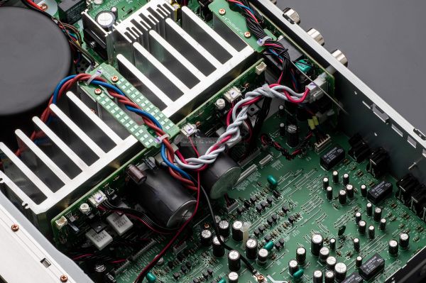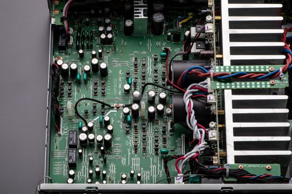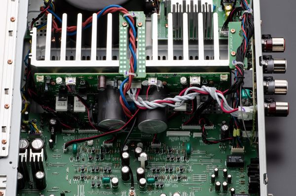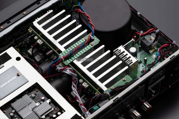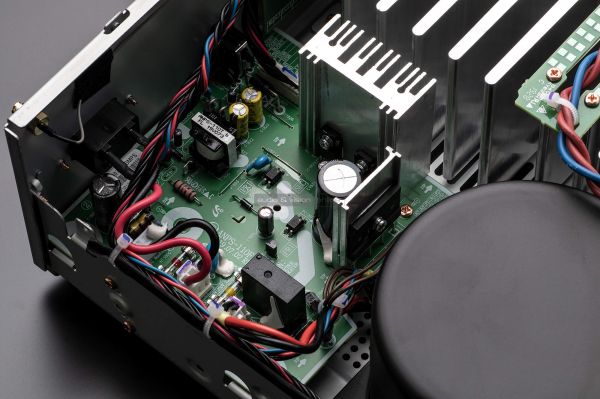 Méretes toroid transzformátor és jókora hűtőbordák gondoskodnak a 8 ohmon 2x60 W, 4 Ohmon 2x80 W teljesítményről. Elszeparált és árnyékolt a digitális rész, aminek mivel kicsi a teljesítmény-felvétele, mindig áram alatt van, így hálózatról is be lehet kapcsolni a készüléket.