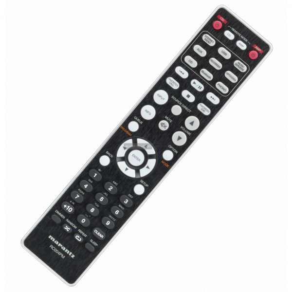 A távvezérlő a szokásos hosszúkás, szálcsiszolt kinézetet keltő műanyag előlappal ellátott, más Marantz készülékeket is kezelni tudó téglatest.