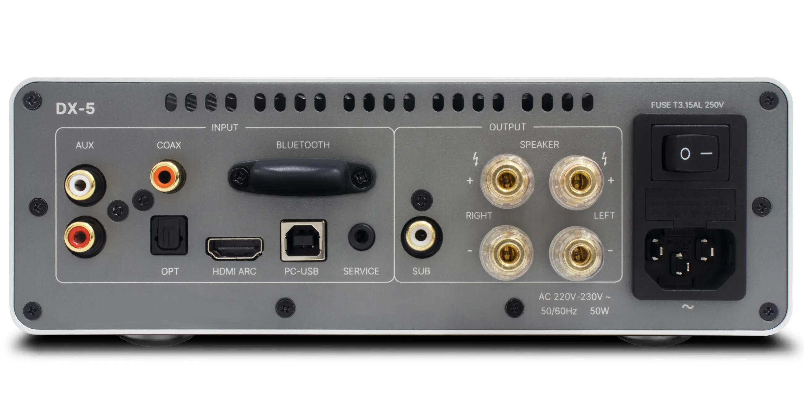 DA konverterrel ugyancsak rendelkezik az eszköz, ESS ES9039Q2M chip segítségével fogadja a Bluetooth, optikai, számítógépes USB-B és HDMI ARC bemenetekről érkező jelet. Kétségtelenül digitális forráseszköz centrikus elgondolással tervezték, de hagytak rajta egy analóg sztereó RCA bemenetet is.