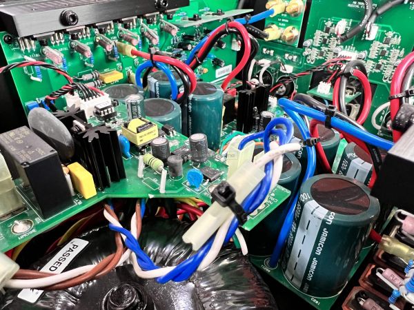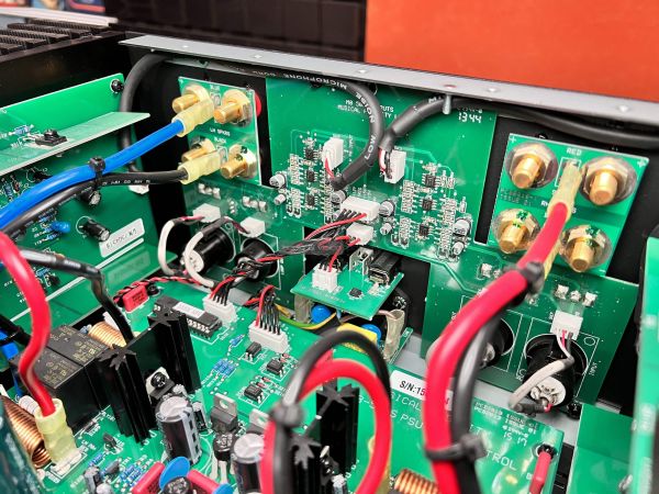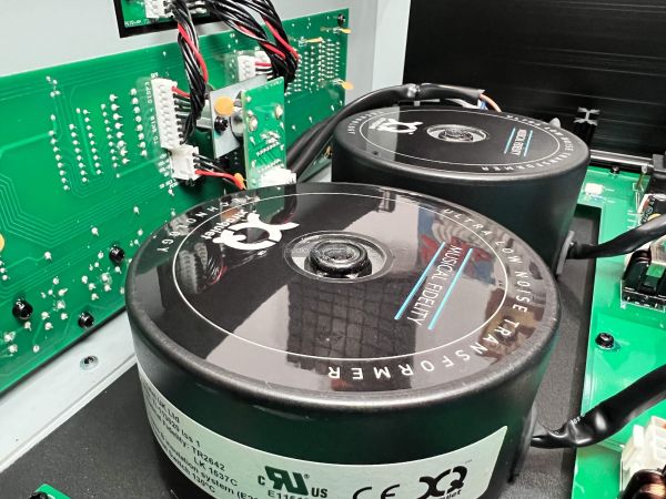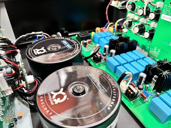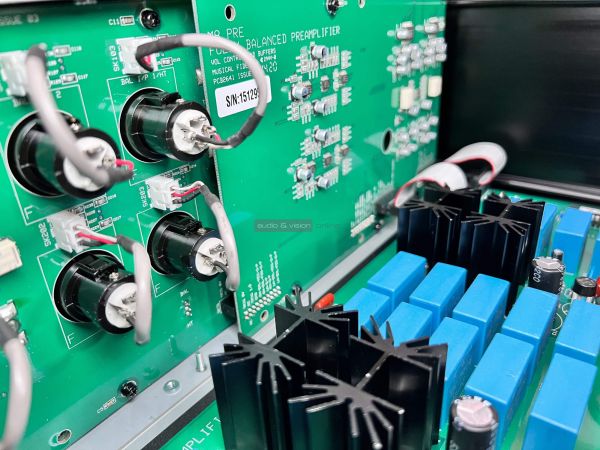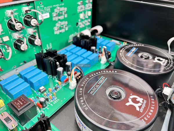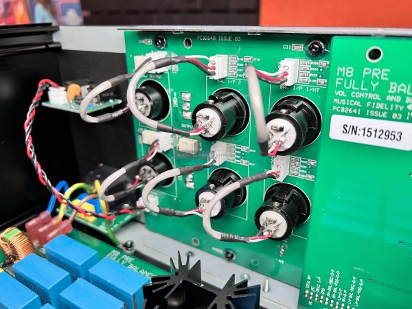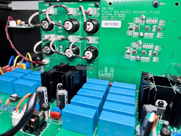 Az előfok fedőlapja egy nagyon komoly tápegységet rejt, oldalanként egy-egy megtermett, 350 W teljesítményű toroid transzformátor dolgozik benne és valóban teljesen szimmetrikus kialakítású, nem egy csupán szimmetrikus ki és bemenetekkel ellátott, de valójában aszimmetrikus készülék. Tovább vizsgálva a belsőt, az átgondolt tervezés és az annak megfelelő kialakítás köszön vissza, pontosan úgy, ahogyan ígérték: az optimális teljesítmény és szigetelés érdekében minden csatorna, minden egyes fokozata saját szabályozó áramkört kapott, a tápegység ultraalacsony impedanciájú kialakításának köszönhetően az áramleadás maximalizált. A működés tisztán A osztályú, a kapcsolást kifinomult konfigurációban valósították meg, a Musical Fidelity állítása szerint a torzítás és a zajszint ultra alacsony, a frekvencia-átvitel pedig gyakorlatilag tökéletes. Mindez a számok tükrében kevesebb, mint 0,003 % minimális torzítási szintet, -117 dBA zajszintet, és -3 dB-en belül mérve 75 kHz-es sávszélességet jelent, a figyelemreméltó frekvencia-átvitel pedig a hallható hangsávon belül teljesen lapos. A sztereó szétválasztás 1 kHz-en 96 dB.