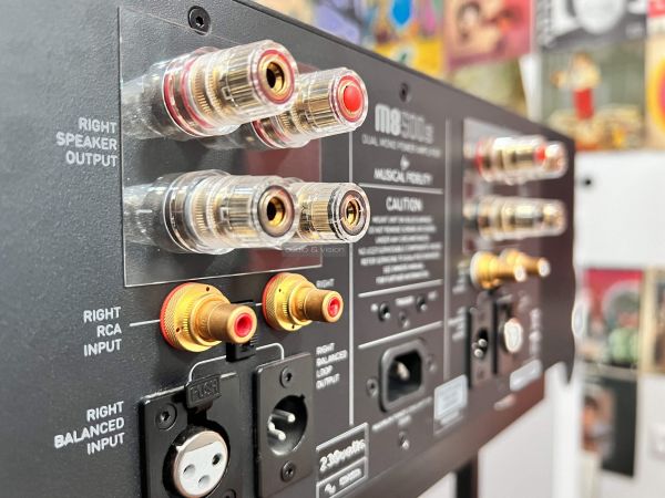 Az M8s-500s tehát egy csatornánként 500 wattos, teljesen szimmetrikus sztereó erősítő, ami 4 ohmon majdnem megduplázza teljesítményét. Egy pár nagyáramú iker végerősítő szekcióval rendelkezik, amelyek hidalt monó konfigurációban működnek a lehető legjobb dinamikai és meghajtási képesség érdekében. Két túlméretezett tápegység biztosítja a tápzaj-szűrést és a tranziensek kezelését. A Musical Fidelity kiemeli, hogy a két belső erősítő közötti fázisfelosztást egy nagy teljesítményű, teljesen szimmetrikus, széles és egyenletes frekvencia menetű átalakító áramkör végzi, amely ugyanakkor egyenletes sávon belüli karakterisztikával, illetve nagyon alacsony torzítással és zajjal rendelkezik.