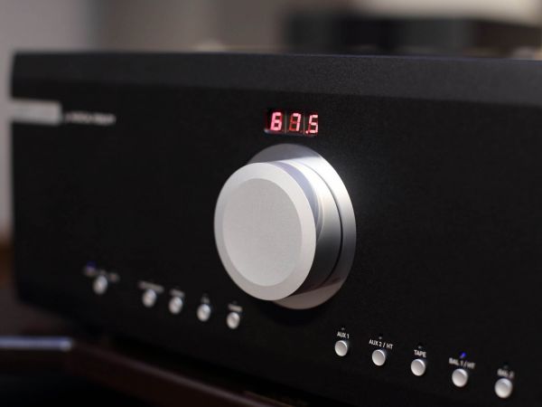 Az előerősítő előlapját a nagyméretű hangerő potméter uralja, a hangerőállást egy a felette található kis piros színű digitális kijelző mutatja az előlap közepén, az érték decibelben értendő. 40-es állásban ezért például szinte alig szól a rendszer, de ez remek hír azoknak, akik esténként egészen halkan szeretnének zenét hallgatni. A legtöbb elő vagy integrált erősítővel szinte lehetetlen a hangerő ennyire finom adagolása. Ha a HT bypass funkció aktív, akkor a kijelzőn a hangerő állás helyett a 'ht' felirat jelenik meg. A bekapcsoló gomb mérete megegyezik a bemenetek gombjaival, amelyek a hangerő potméterrel együtt mindig ezüstszínűek, attól függetlenül, hogy a modell fekete vagy ezüst. A hangerő szabályzón kívül csak ez a 9 db aprócska kör alakú gomb található az előlapon és jobb oldalon az infra érzékelő. A bemenet választás relé vezérelt, megtörténtét finom kattanások jelzik, a működés precíz, pontos, magától értetődő.