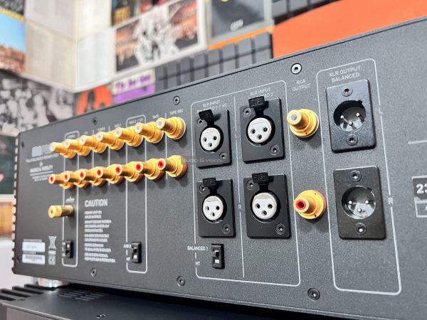 Az M8s Pre bemenetek széles skálájával rendelkezik a hátlapján, beleértve a már említett alacsony zajszintű phono fokozatot, alatta egy földelő ponttal és az MM/MC kapcsolóval, de ezen kívül 2 szimmetrikus bemenet (egy házimozi bypass opcióval), 3 vonalbemenet (egy házimozi bypass opcióval) és egy tape be/kimenet is rendelkezésre áll. A házimozi funkció kapcsolható (a kapcsolók az erre kijelölt bementek alatt találhatóak), RCA és XLR módban egyaránt működik, és mivel van RCA és XLR előfok kimenet is és akár mindkettő egyszerre is használható ez például egy alternatív lehetőséget kínál aktív mélyláda csatlakoztatásához is. A 7 pár RCA bemenet és 1 pár RCA kimenet aljzatai kiemelkedően jó minőségűek és egymástól megfelelően nagy távolságra vannak szerelve, ezért nem jelentenek korlátot még abban az esetben sem, ha nagyon vastag kábeleket használnánk. Mindez a szimmetrikus be- és kimenetekre is igaz. A hátlap jobb oldalán ezen túl már csak a trigger be- és kimenetet találjuk és a 3 pólusú IEC csatlakozót. A készüléket az előírás szerint földelve kell használni.