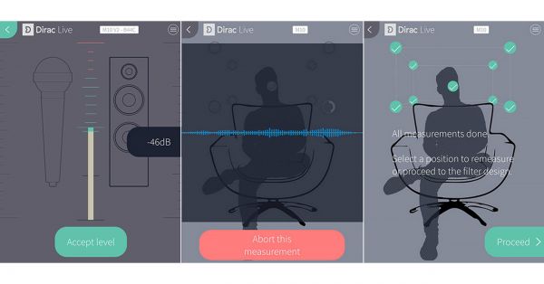 A Dirac használatához le kell tölteni a szoftvert és a mellékelt mikrofonnal elvégezni a beállítást, ezzel kiegyengetvén a frekvenciagörbe hibáit.