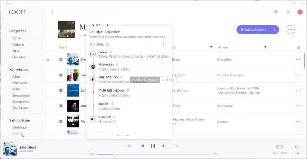 Reménytelen dolog lenne felsorolni mi mindenre képes az M10 V2 a zenei szolgáltatások terén, az összes fontos streaming szolgáltatót elérhetjük, ezerféle netes rádiót, Radio Paradise-t MQA kódolással, a hálózaton láthatjuk a PC-t, a NAS-t, nálunk még a Cocktail Audio-ba szerelt SSD-t is látta háttértárként. Természetesen ez a NAD is Roon Ready képes.