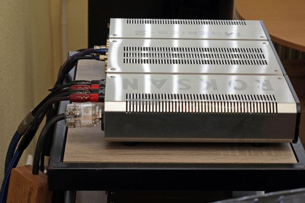 A teszt két felvonásból állt. Először kb. 18 m2 alapterületű szobában, Usher Dancer Mini-X hangfalakkal használtuk a Roksan Caspian-okat. Ezután átvittük őket egy kb. 30 m2-es helyiségbe, ahol Atlantic Technology AT-1 hangfalakat bíztunk rájuk. Mindkét környezetben ugyanazt a kábelezést (LessLoss DFPC Signature táp-, Neotech NES-3002II hangfal-, LessLoss Anchorwave XLR összekötő) és készülékállványt (Söundarts) alkalmaztuk.