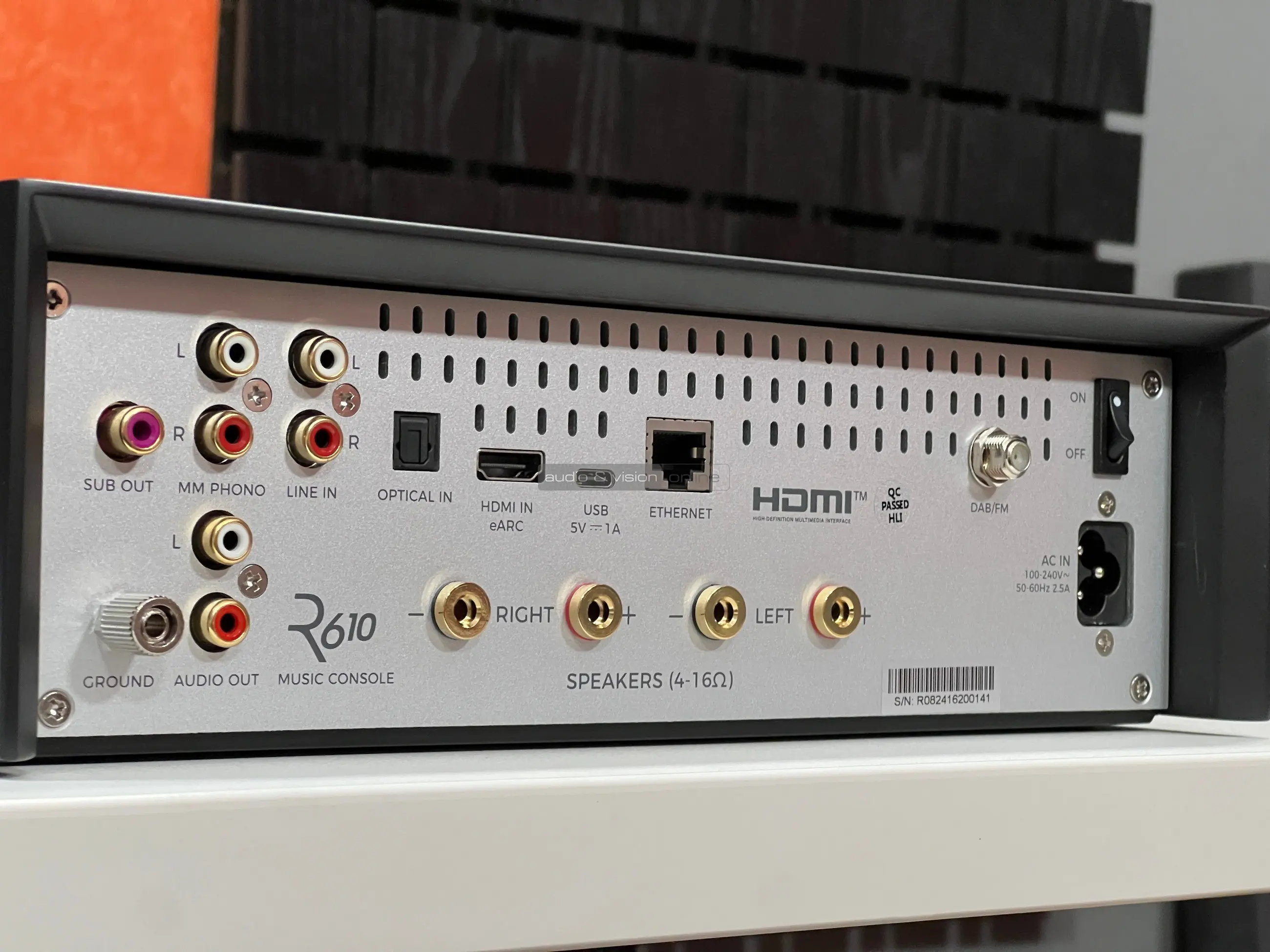 Az R610 belsejébe 2x75 wattos D-osztályú erősítőt és Burr Brown DAC-ot építettek, streaming szolgáltatások terén Spotify Connect, TIDAL Connect, Apple Airplay 2, Google Cast és aptX képes v5.1 verziójú Bluetooth áll a rendelkezésünkre. A mintavételi frekvencia 32 bit/384 kHz, a lejátszható formátumok között pedig FLAC, AIFF, WAV, MP3, AAC, AAC-LC, HE-AAC, HE-AAC közül választhatunk. Van még DAB, DAB+, FM és internetrádió, ahogyan UPnP média szerver támogatás is.