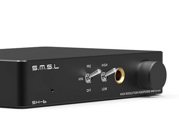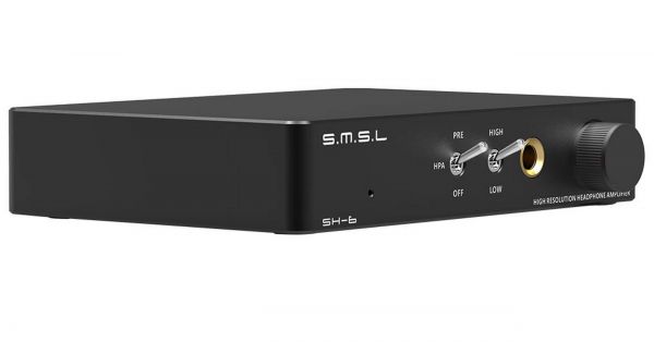 Az S.M.S.L SH-6 formája és mérete ugyanaz, mint az SU-6-é, ezért egymás mellett vagy egymás tetejére helyezve is harmonikus párost alkotnak. A fejhallgató erősítő nem érintésre érzékeny "gombot", hanem két billenőkapcsolót tartalmaz. Az egyikkel alacsony, vagy magas jelszint választható. A másik lefelé kikapcsolt, középre fejhallgató erősítő, felfelé pedig előerősítő üzemmódba állítja az elektronikát. Hangerőszabályzás egy kicsi, de igényes tekerőgombbal lehetséges.