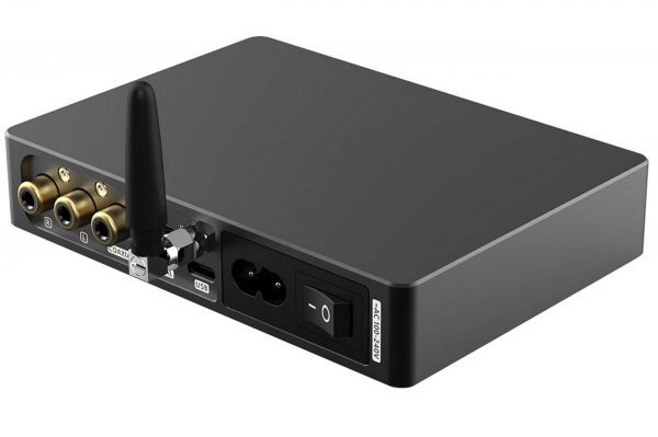Az SU-6 hátsó oldalán kissé szűkösen, de hagyományos méretű kábelekkel jól hozzáférhetően sorakoznak a csatlakozók. Koaxiális, optikai és számítógépes kapcsolatra szolgáló USB-C bemenetek közül lehet választani, a kimenet aranyozott sztereó RCA. Az USB-C csatlakozó fölött található a vezeték nélküli jelfogadásért felelős, kisméretű Bluetooth antenna. Ezek után egy C 7 IEC (ismertebb nevén borotva vagy piskóta) tápaljzat és egy mechanikus főkapcsoló zárja a sort. Az eszköz apró gumitalpakon áll.