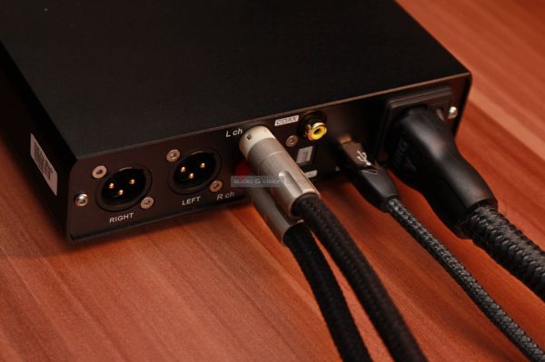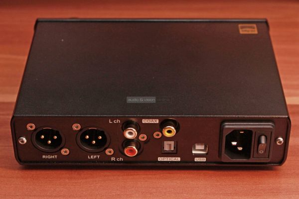 Hátul található a dicséretes módon nem elspórolt XLR, és az RCA analóg kimenet, a koaxiális, az optikai, az USB bemenet és a szabvány IEC tápcsatlakozó aljzat.