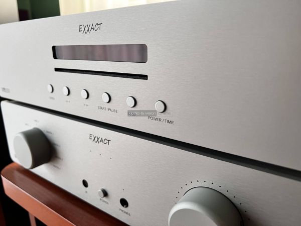 A legmodernebb 24 bit/192 kHz-es Burr-Brown D/A konverterek alkalmazása is bíztatóan hangzik, ahogyan az is, hogy a 2 mm-es acél házat belsőleg olyan anyagokkal bélelték ki, melyek a rezgéscsillapításban erős szerepet játszanak. A speciális rezgéselnyelő lábak itt is megjelentek, azonban a távvezérlés jelenleg is opcionális. A funkciók mindegyike elérhető mindkét EXXACT modell frontoldaláról, de a távirányítót minden esetben külön kell megrendelnünk, ha igényt tartunk rá, természetesen felárért. Megértjük, hogy a high end világában sokszor egyáltalán nem is távvezérelhetők a készülékek csak az előlapról, de mi szívesebben vennénk, ha nem plusz pénzért kéne megvásárolnunk ezt a kényelmi funkciót, ami manapság szerintünk nem nagy kérés. Mobiltelefonról, applikációval vezérelhető komponensek esetében természetesen más a helyzet, de jelen esetben egy klasszikus felállású integrált erősítő - CD-lejátszó kombóról van szó. Az pozitívum, hogy az említett távirányító minőségi, tömör alumínium, nagyszerű kézbe venni, tehát megéri elgondolkozni a plusz kiadáson.