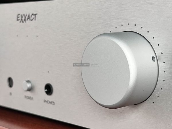 Az egyszerűen EXXACT INTEGRATED elnevezésű sztereó erősítő fémházba öltözött, ezüst vagy fekete színben kapható, frontoldala pedig klasszikusabb és egyszerűbb, pontosabban kezelhetőbb nem is lehetne.