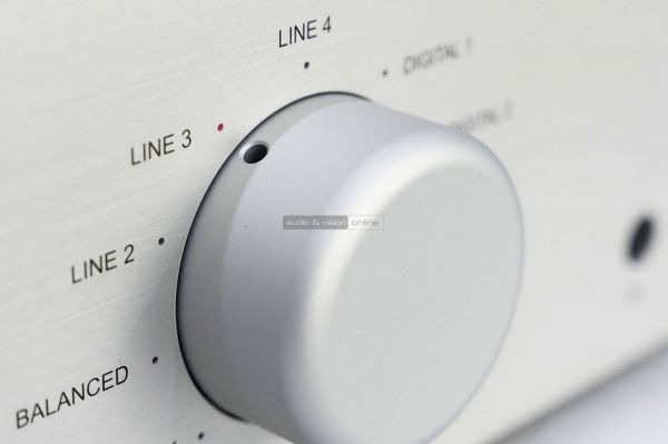 Bal oldalon egy bemenetválasztó, jobb oldalon egy hangerő potméter, köztük pedig egy üzembehelyező gomb, egy fejhallgató kimenet, valamint egy IR aljzat van. Mindkét tárcsához LED-ek tartoznak, amelyek az aktuális bemenetet és a hangerő állapotát jelzik.