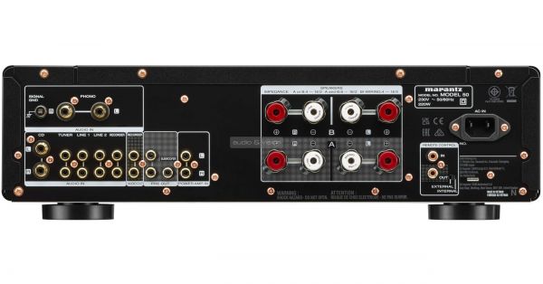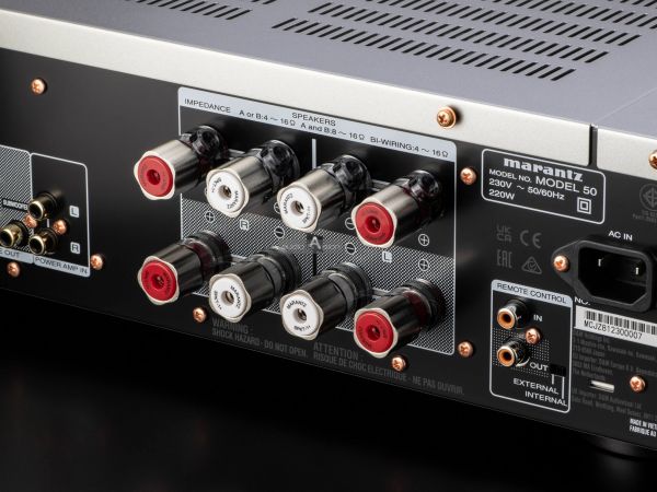A MODEL 50 CD-lejátszónak szánt RCA bemenete a többitől külön található meg, jobb minőségű csatlakozókat tartalmaz a jobb hangzás érdekében. Funkcióit gazdagítja még egy mélysugárzó kimenet (sztereó PRE OUT kimenettel együtt) és egy követlen POWER AMP DIRECT IN nevű bemenet, amely házimozi processzorral kombinálva csak a végerősítő funkciót veszi igénybe.