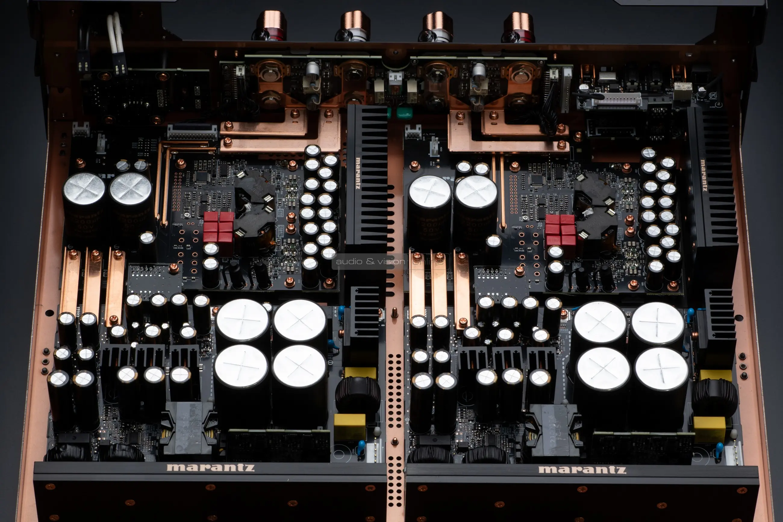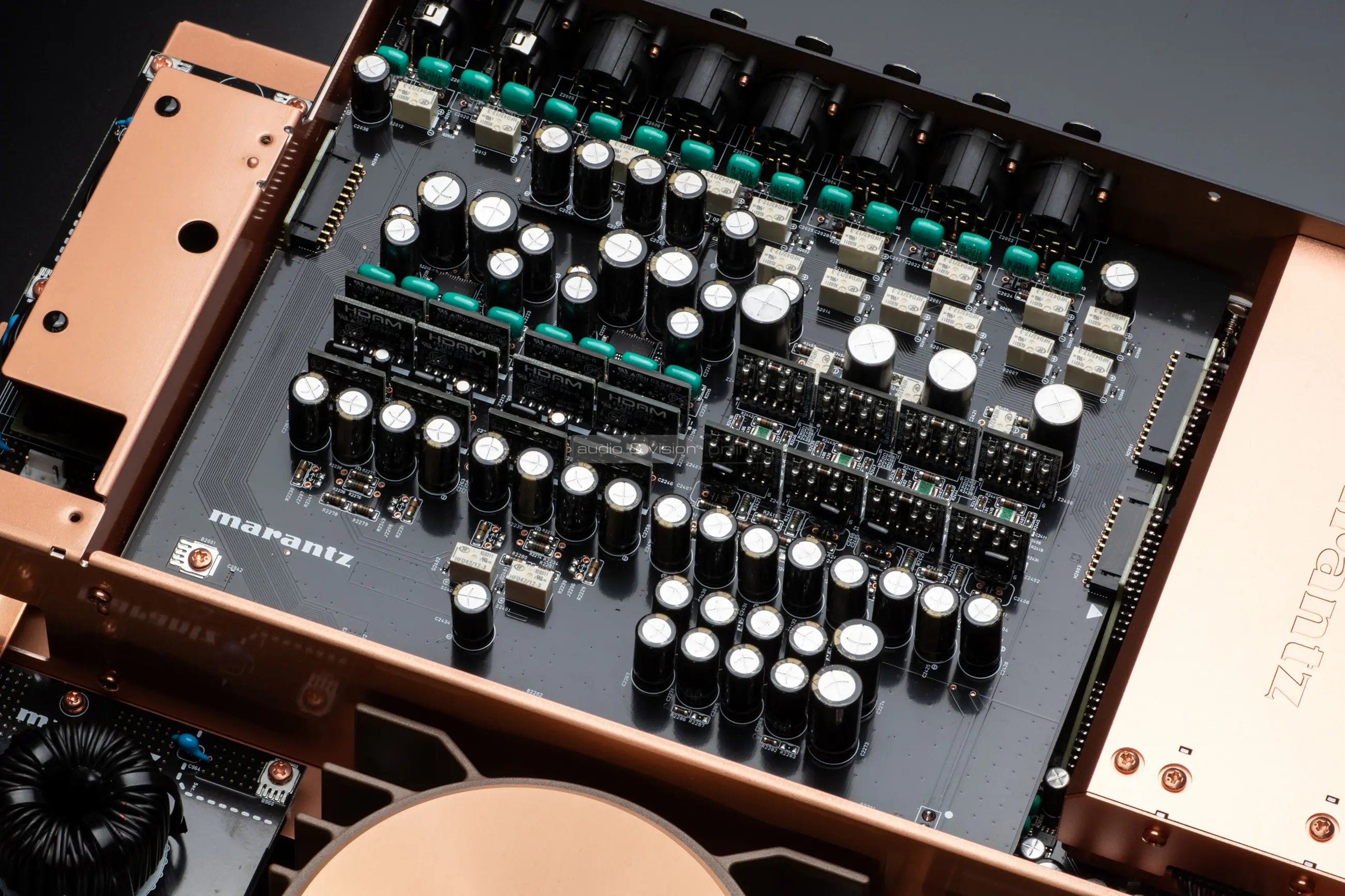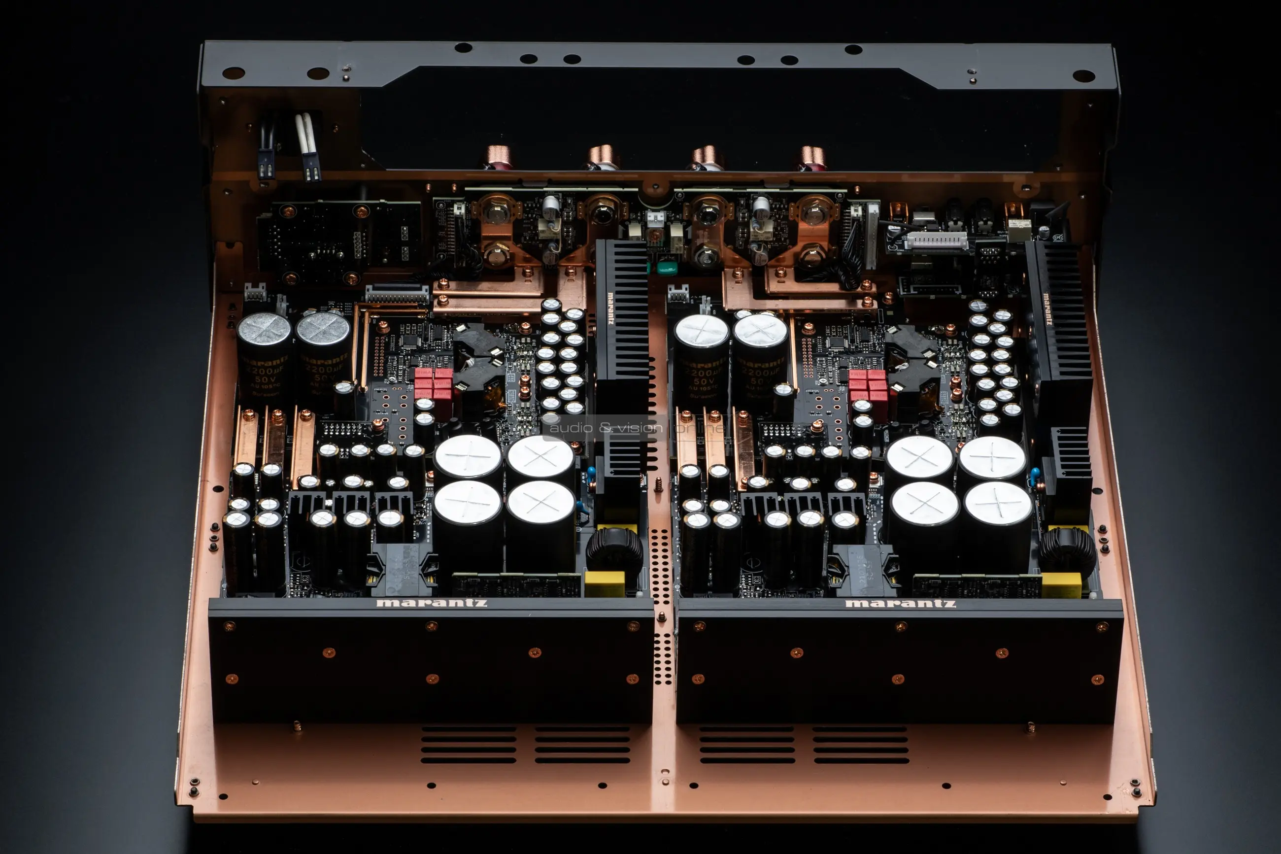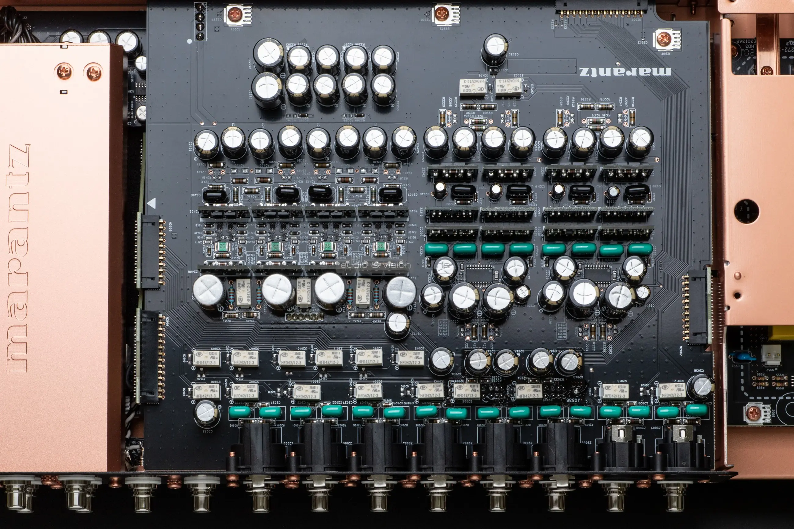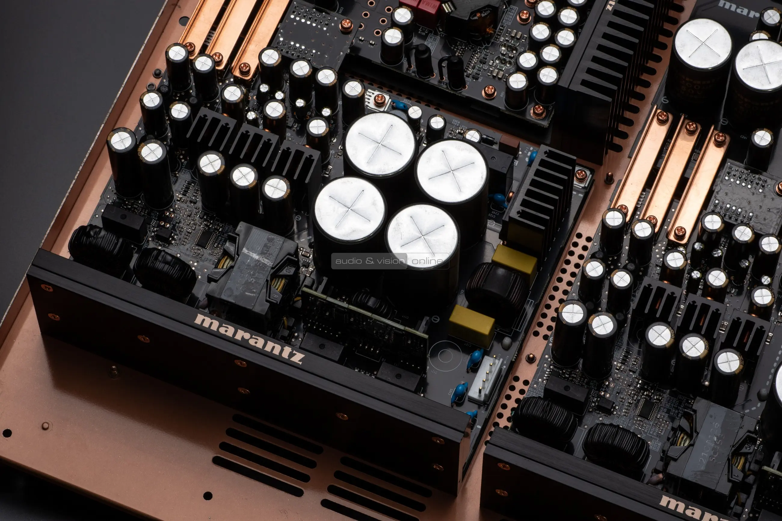Az oldalanként 250 W teljesítményű (8 ohmon) végerősítők új fejlesztésű előerősítő modultól kapják a jelet, mely a Marantz saját fejlesztésű HDAM technológiájának legújabb generációja.