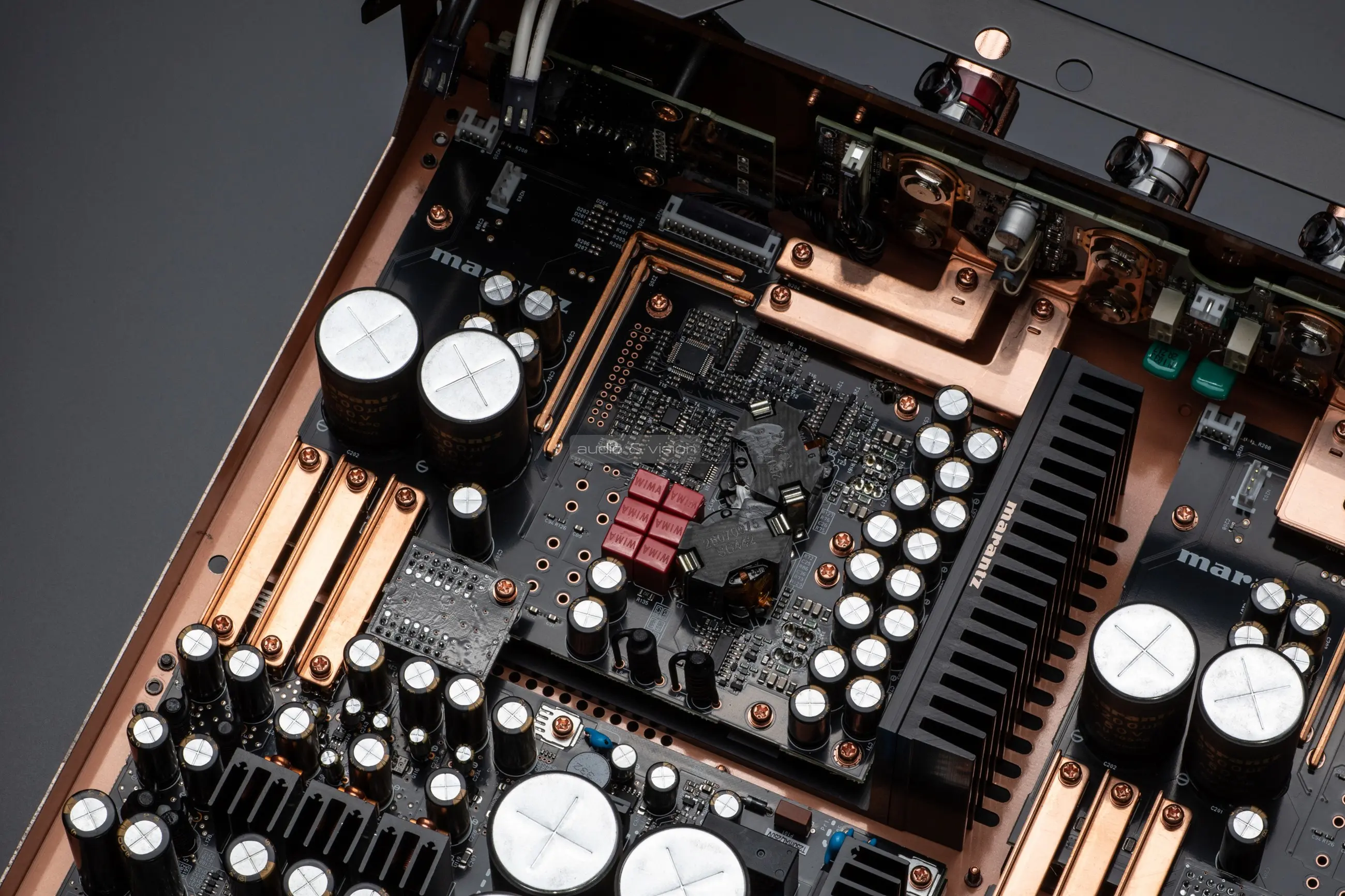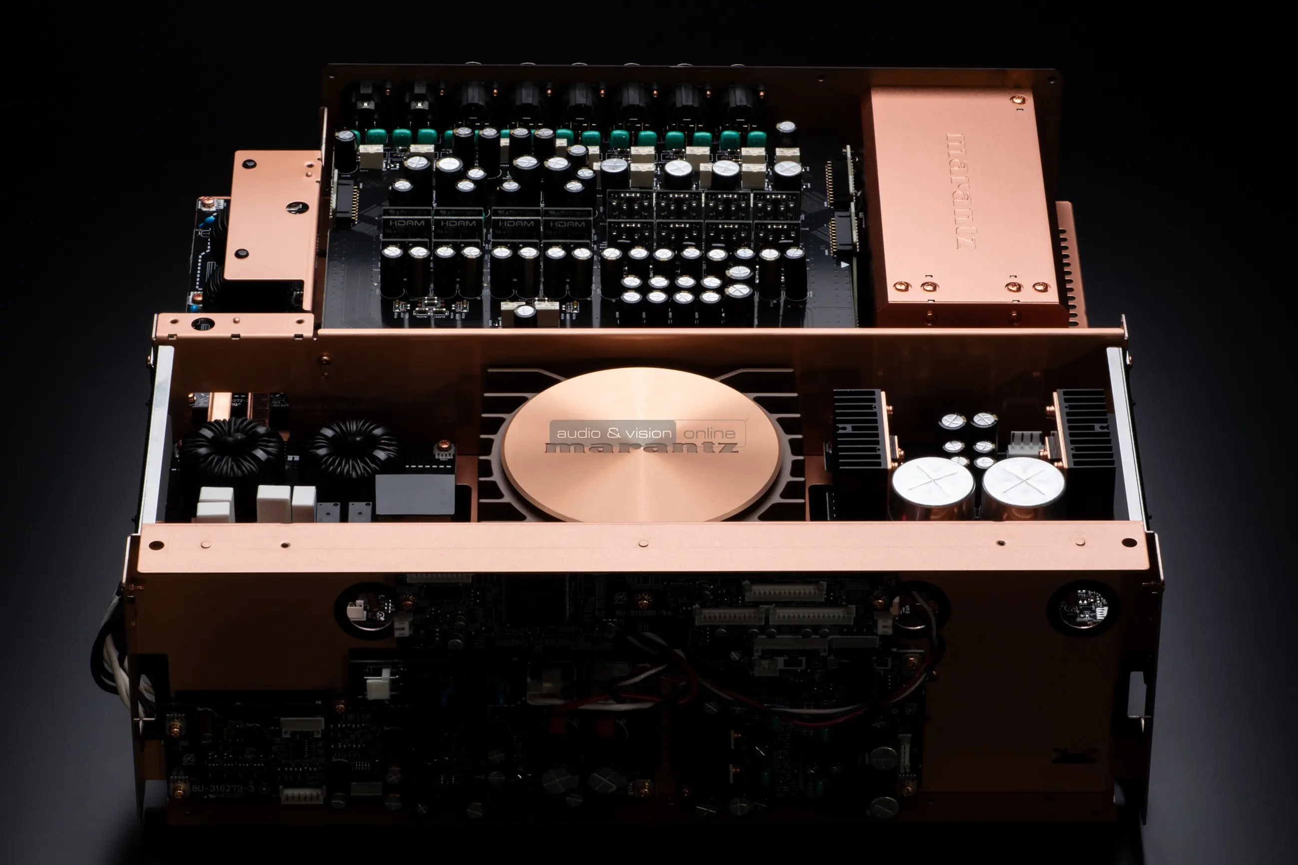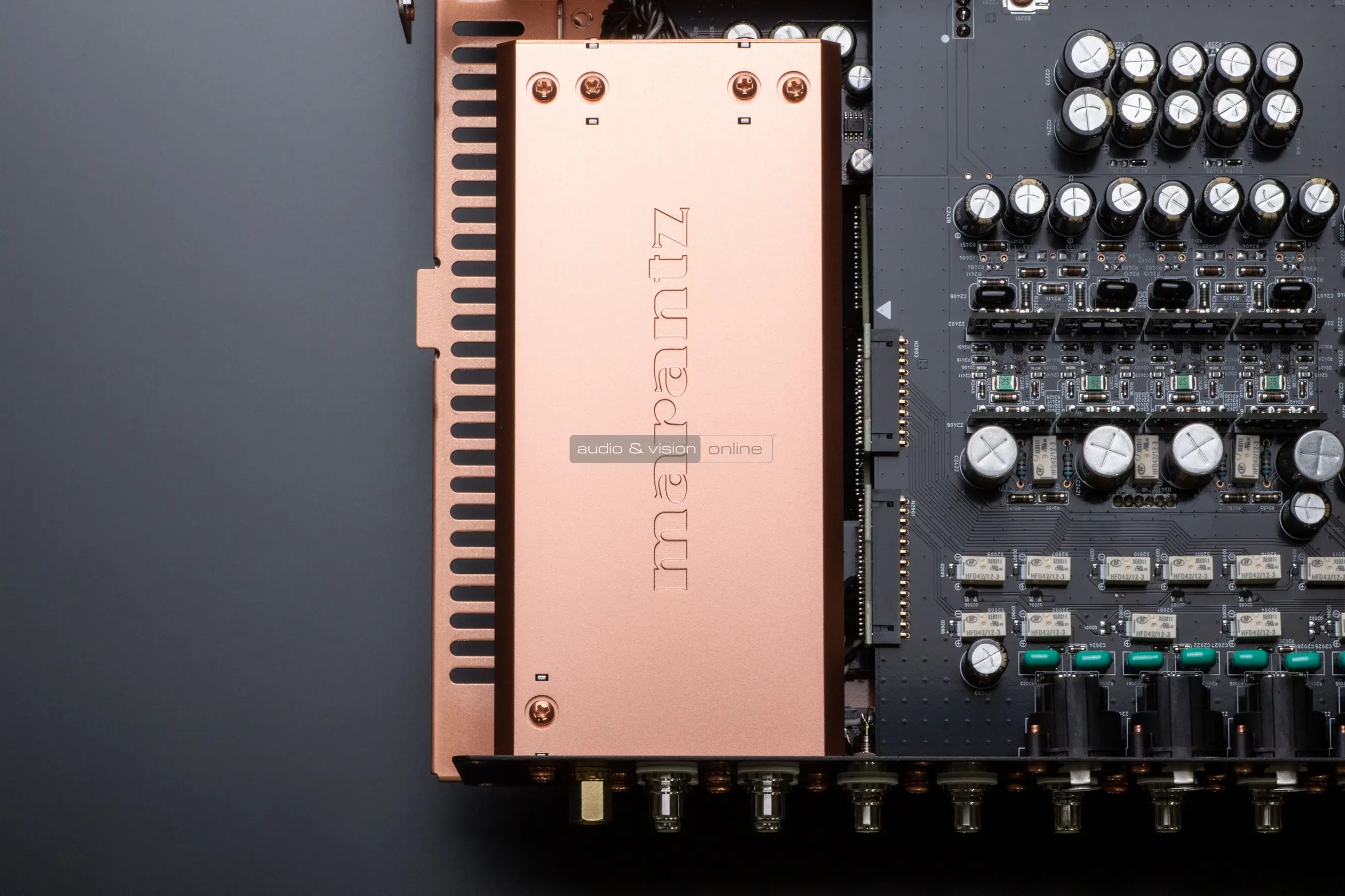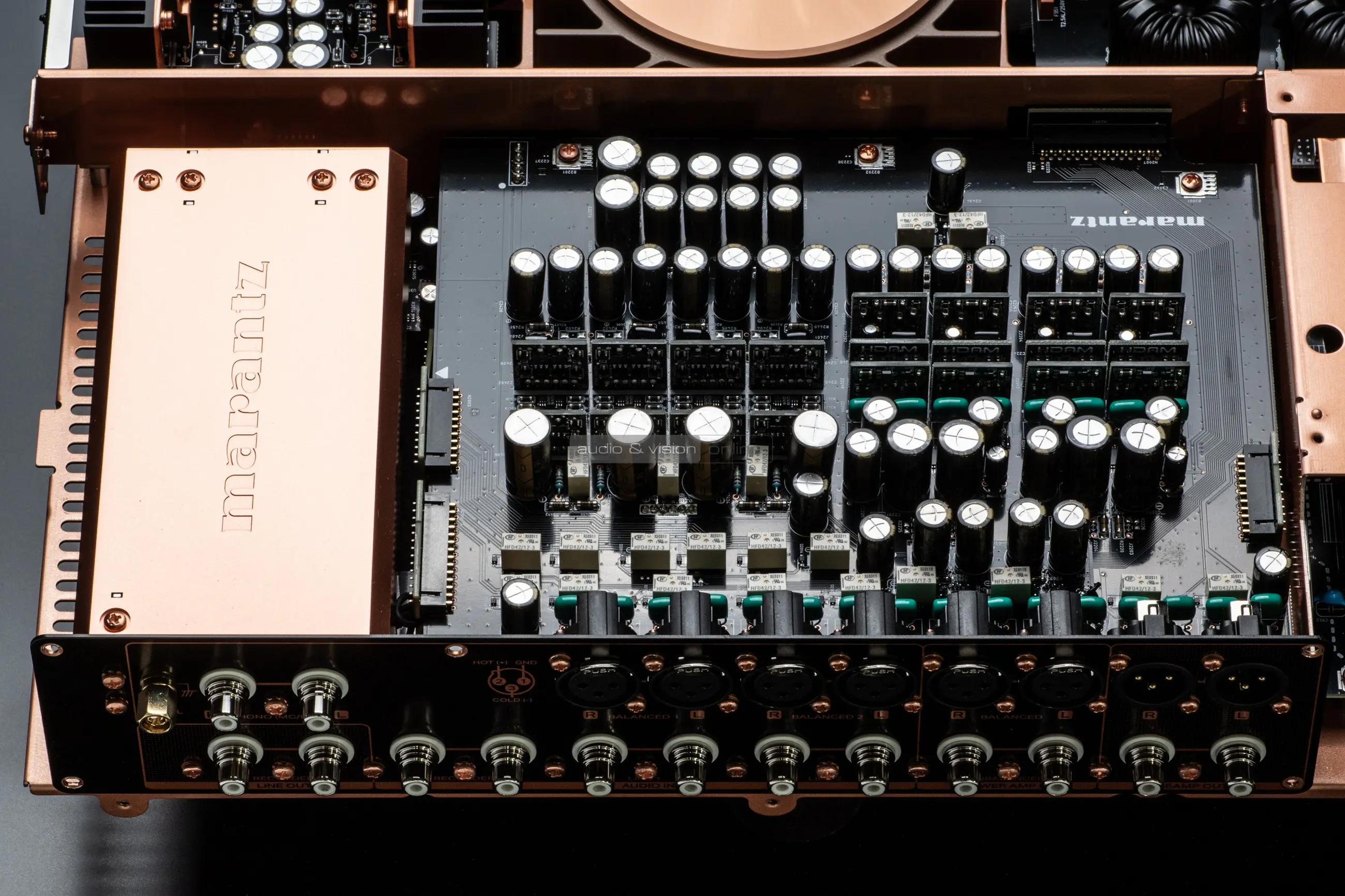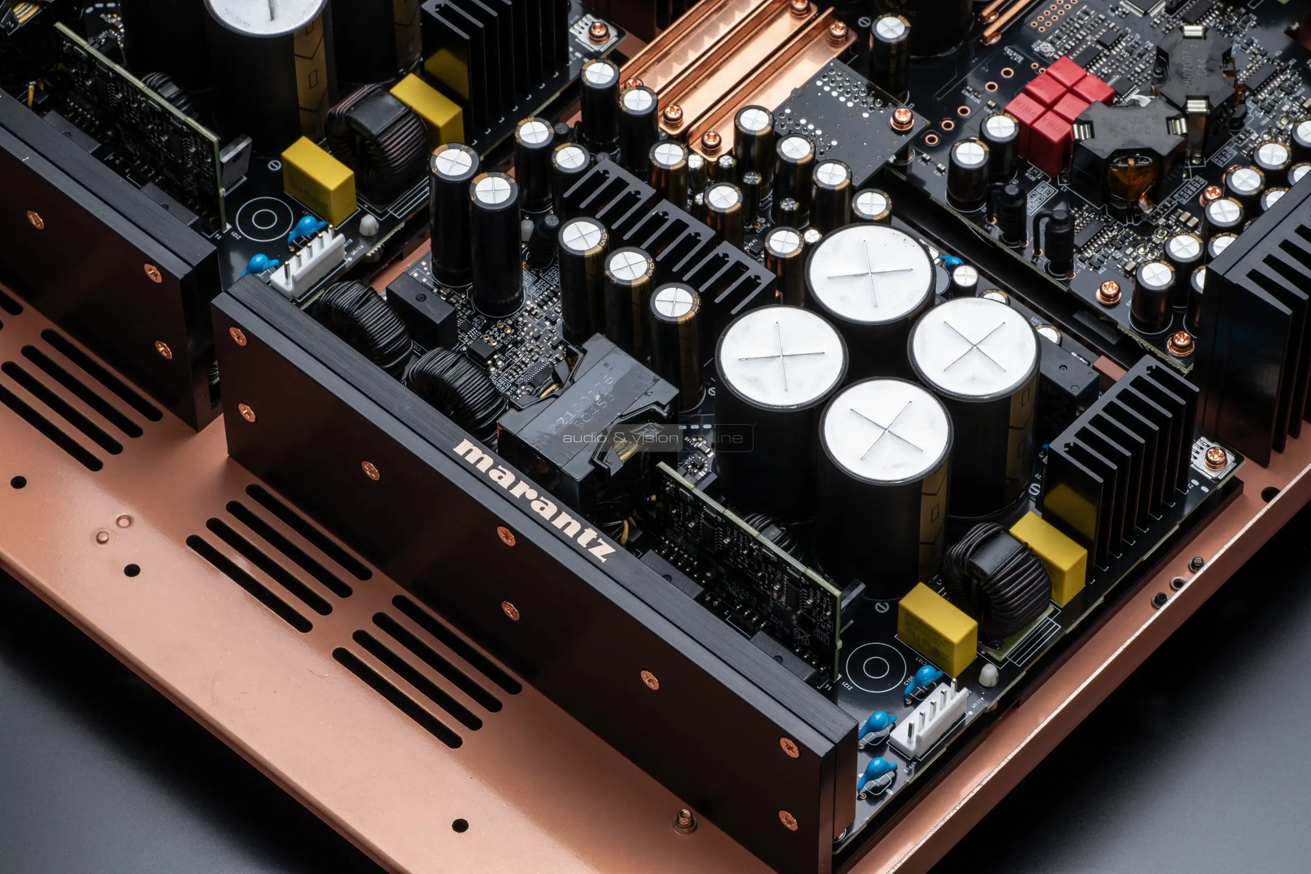Az oldalanként 250 W teljesítményű (8 ohmon) végerősítők új fejlesztésű előerősítő modultól kapják a jelet, mely a Marantz saját fejlesztésű HDAM technológiájának legújabb generációja.