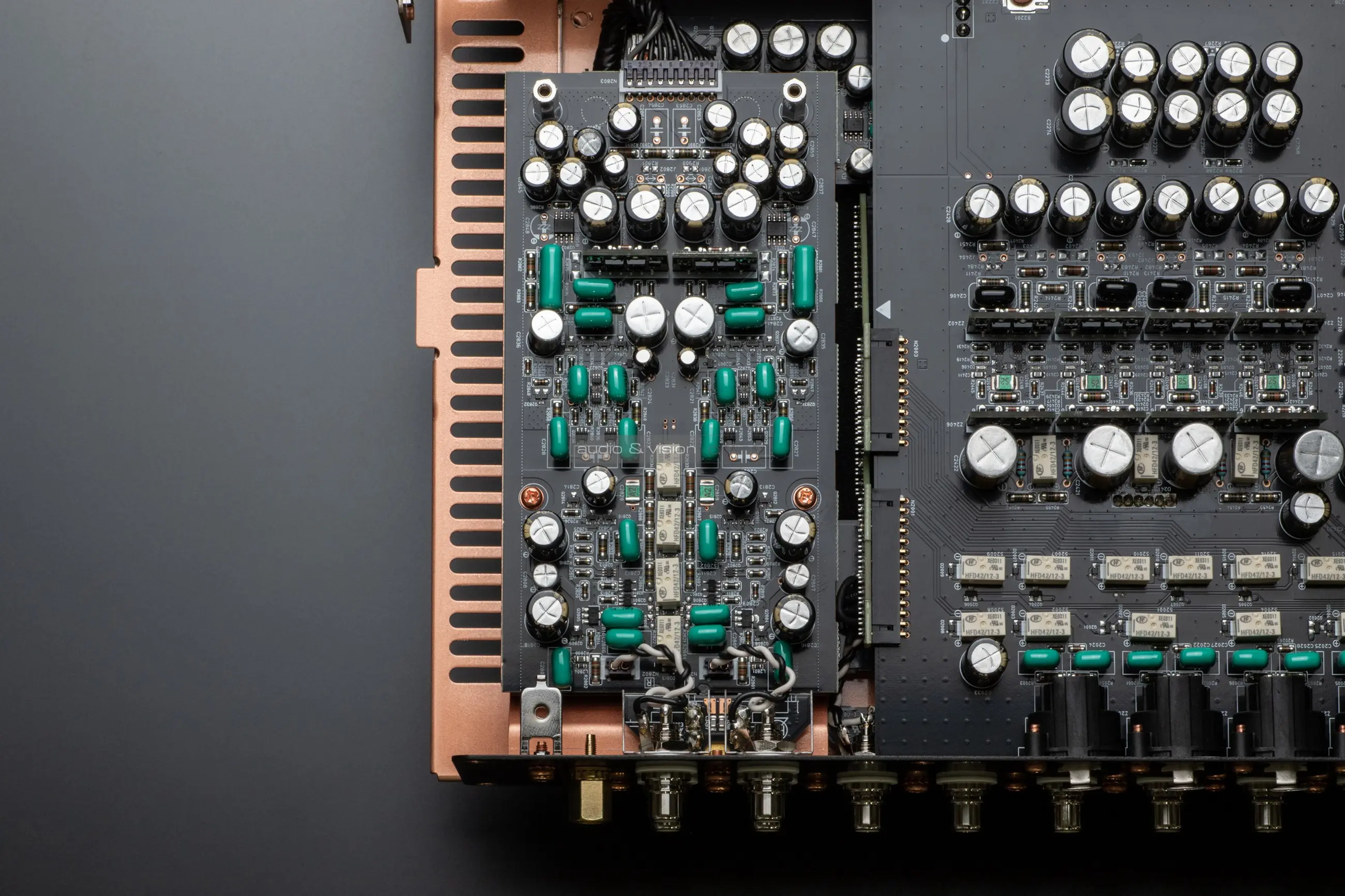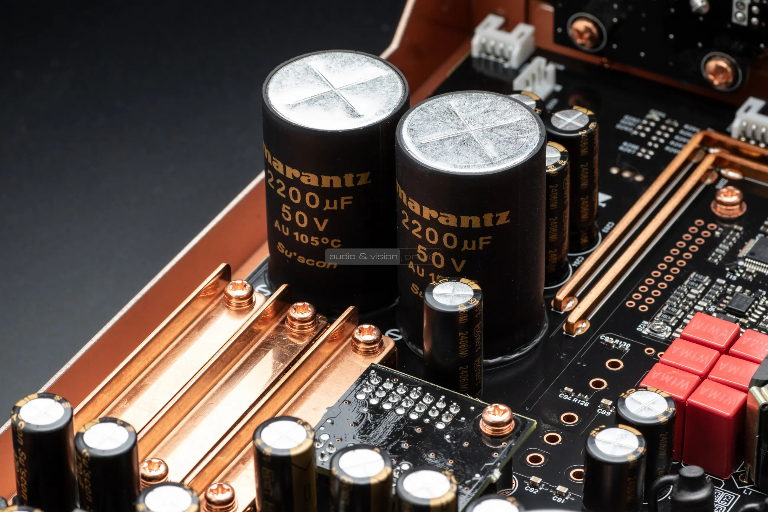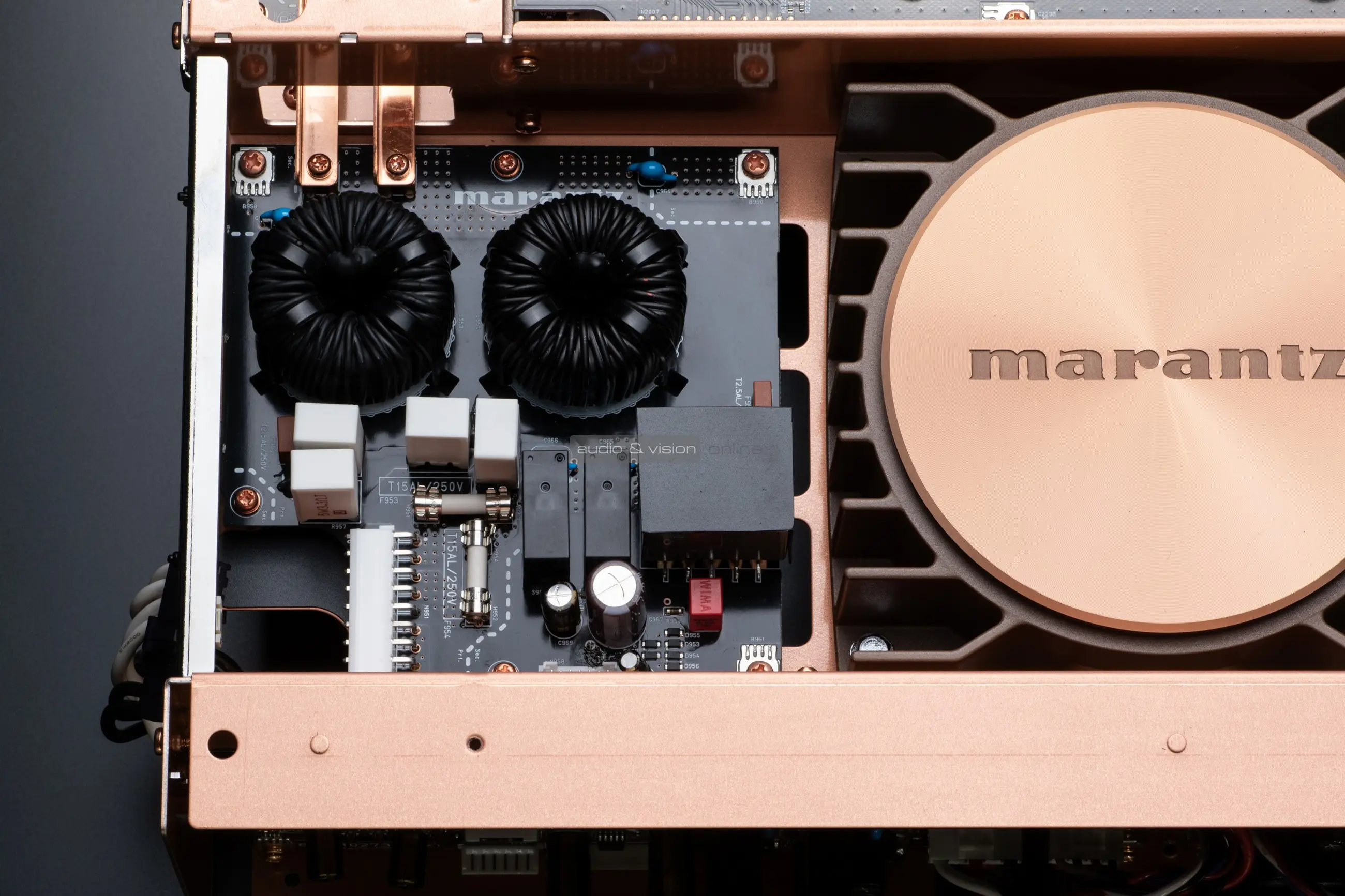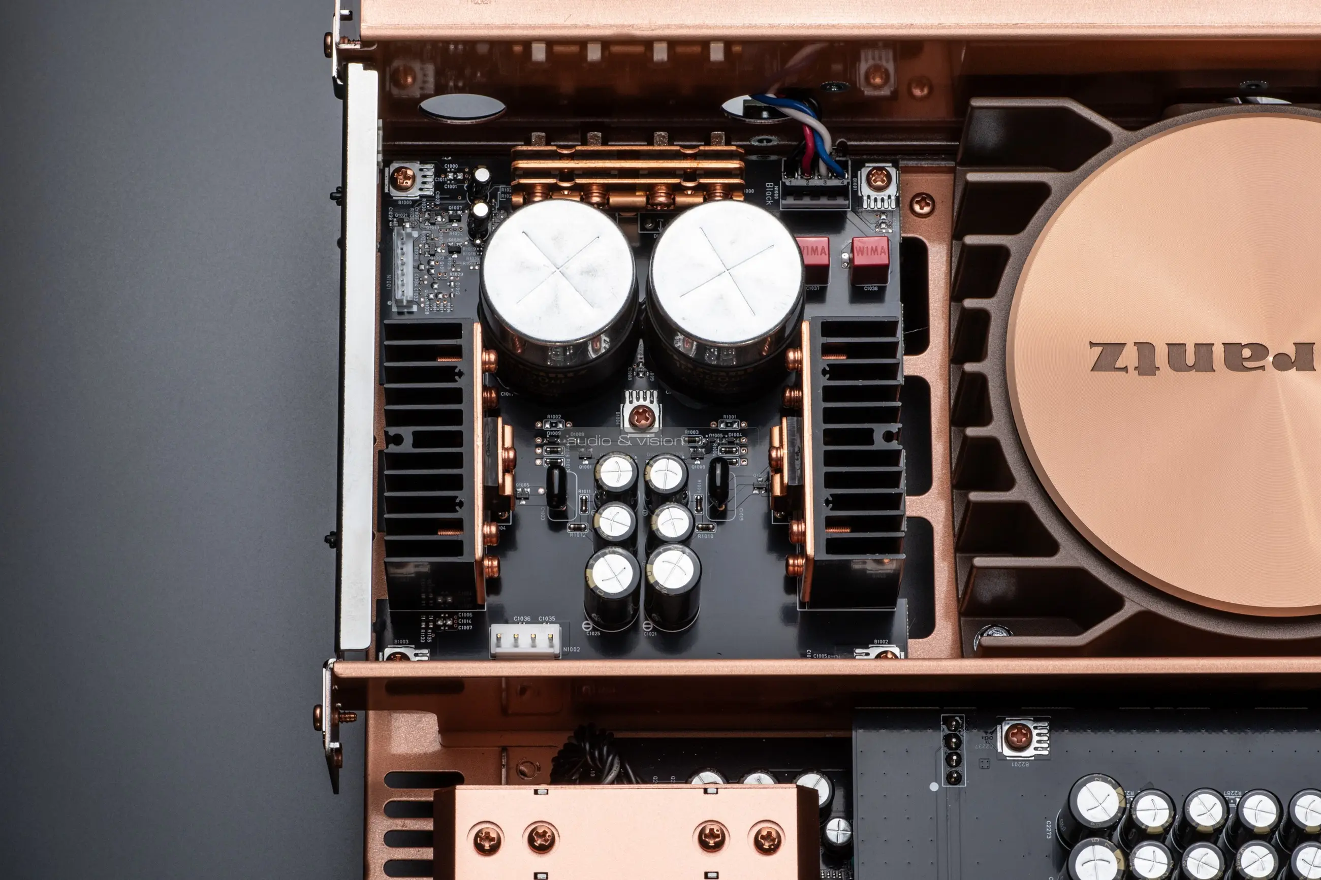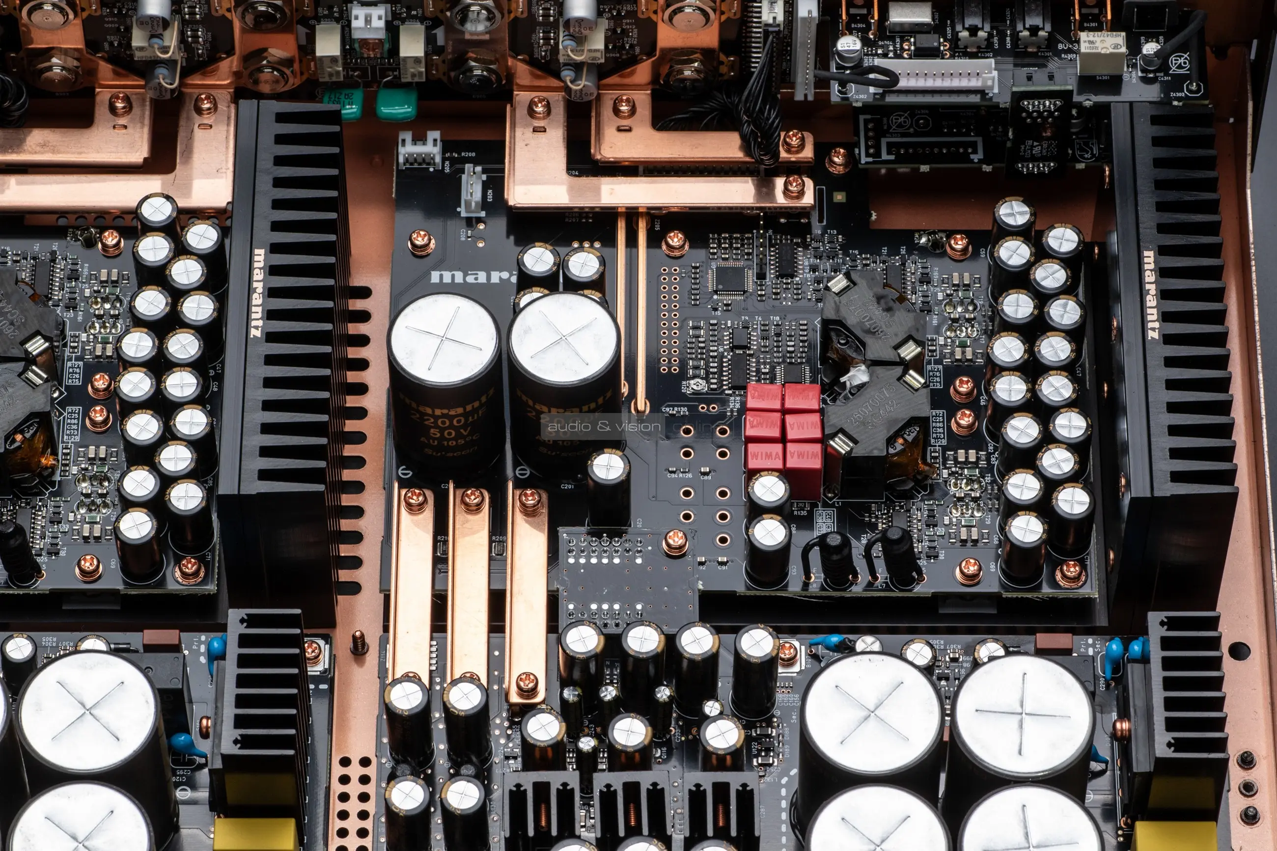 Az oldalanként 250 W teljesítményű (8 ohmon) végerősítők új fejlesztésű előerősítő modultól kapják a jelet, mely a Marantz saját fejlesztésű HDAM technológiájának legújabb generációja.