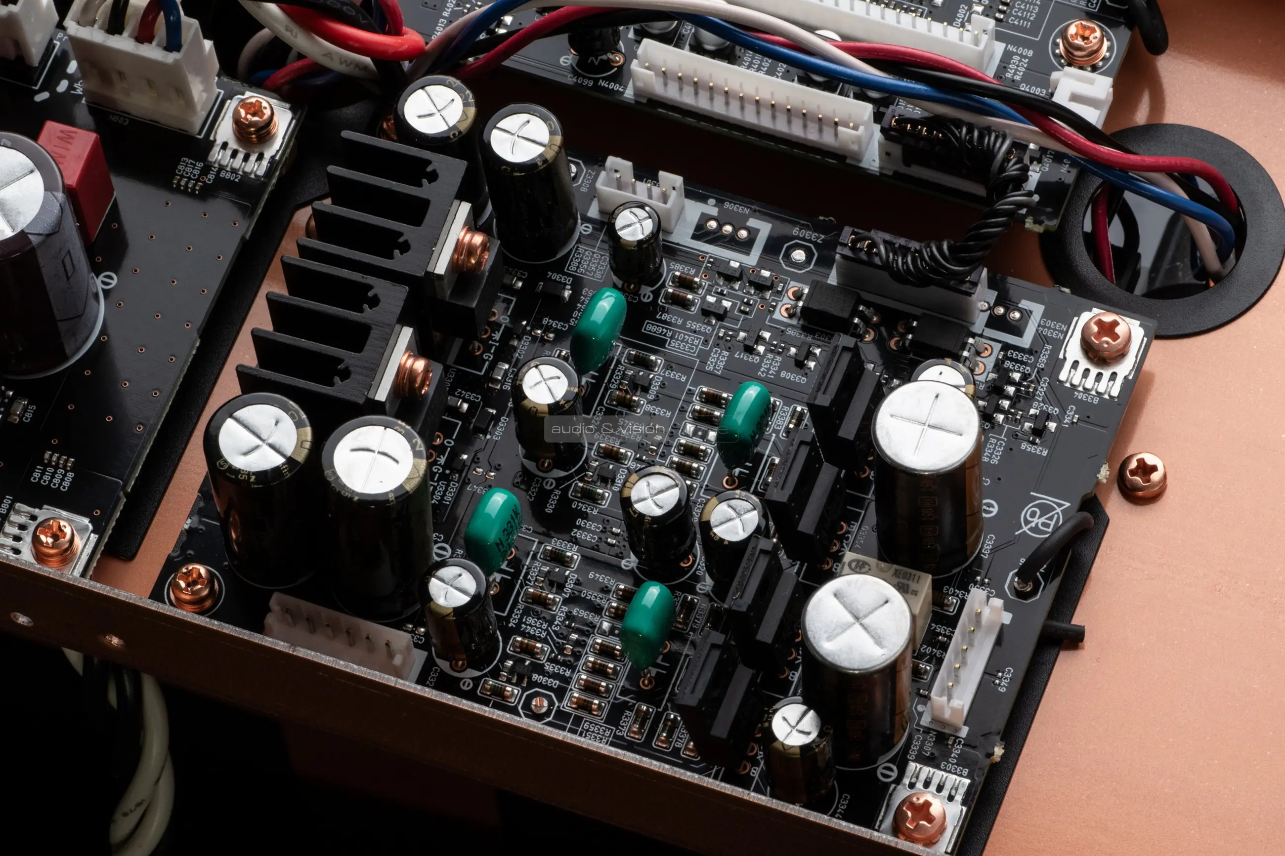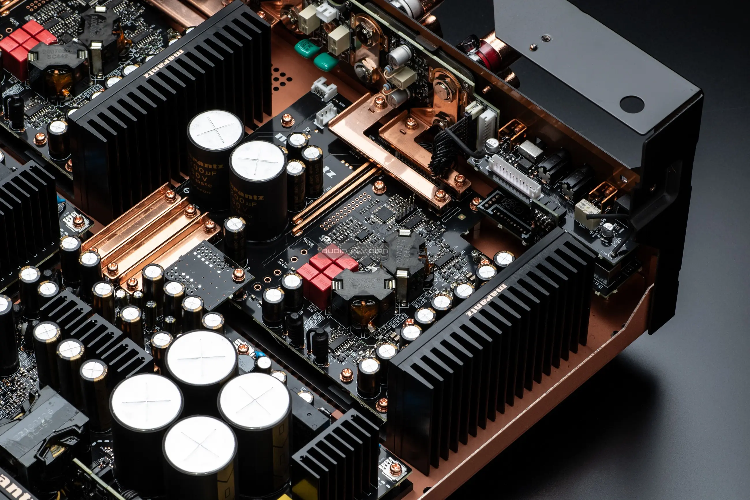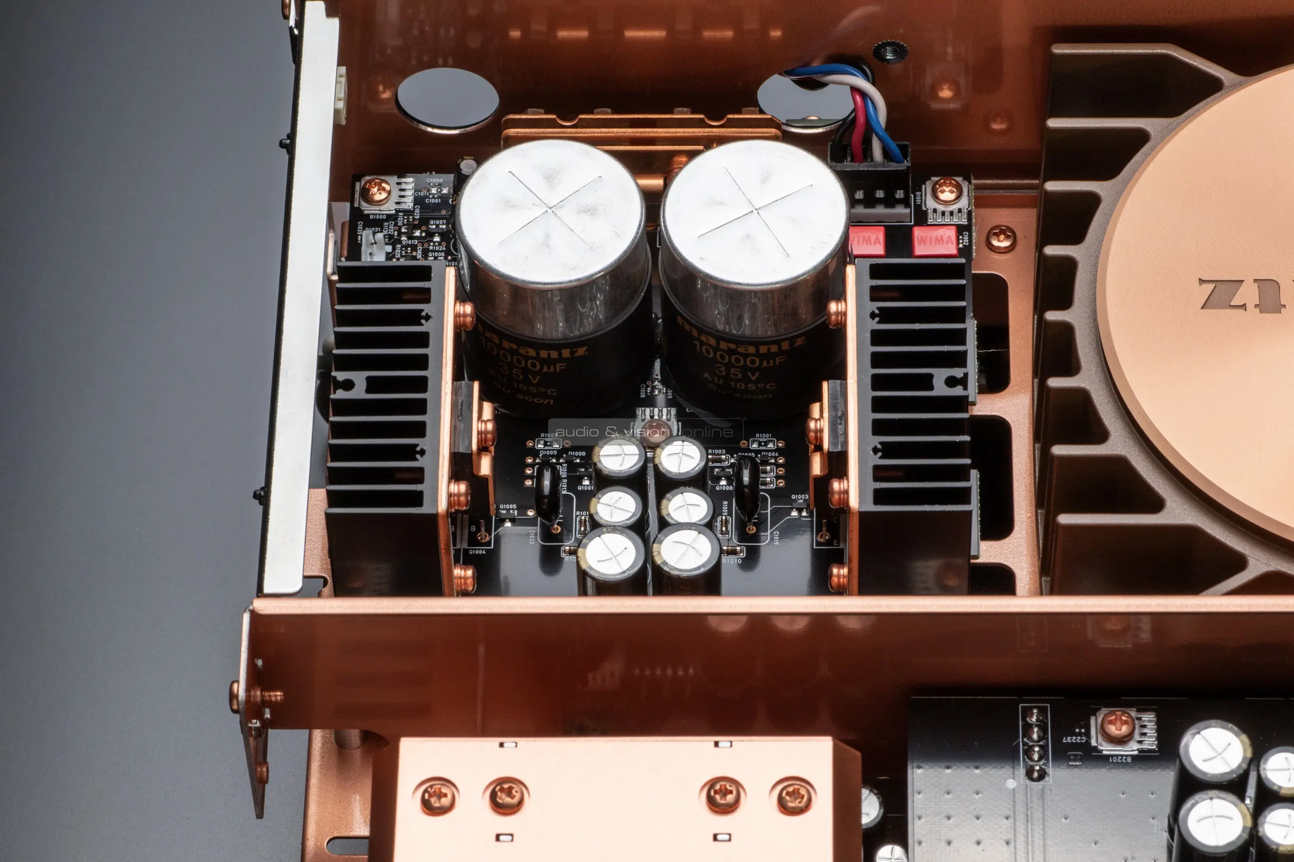 Kettős monó felépítésű erősítő áramköre egy új fejlesztésű tápegységtől kapja az áramot, utóbbit a dán Purifi csapatával közösen fejlesztették ki. Mindössze 0,05% teljes harmonikus torzítást kapunk a specifikáció szerint, ami teljes terhelés mellett, az egész hallható frekvenciasávra értendő. Mindez 30 A csúcsárammal párosul, ami állítólag kivételes dinamikát és impedanciatöltésre teljesen immunis frekvencia-választ eredményez.