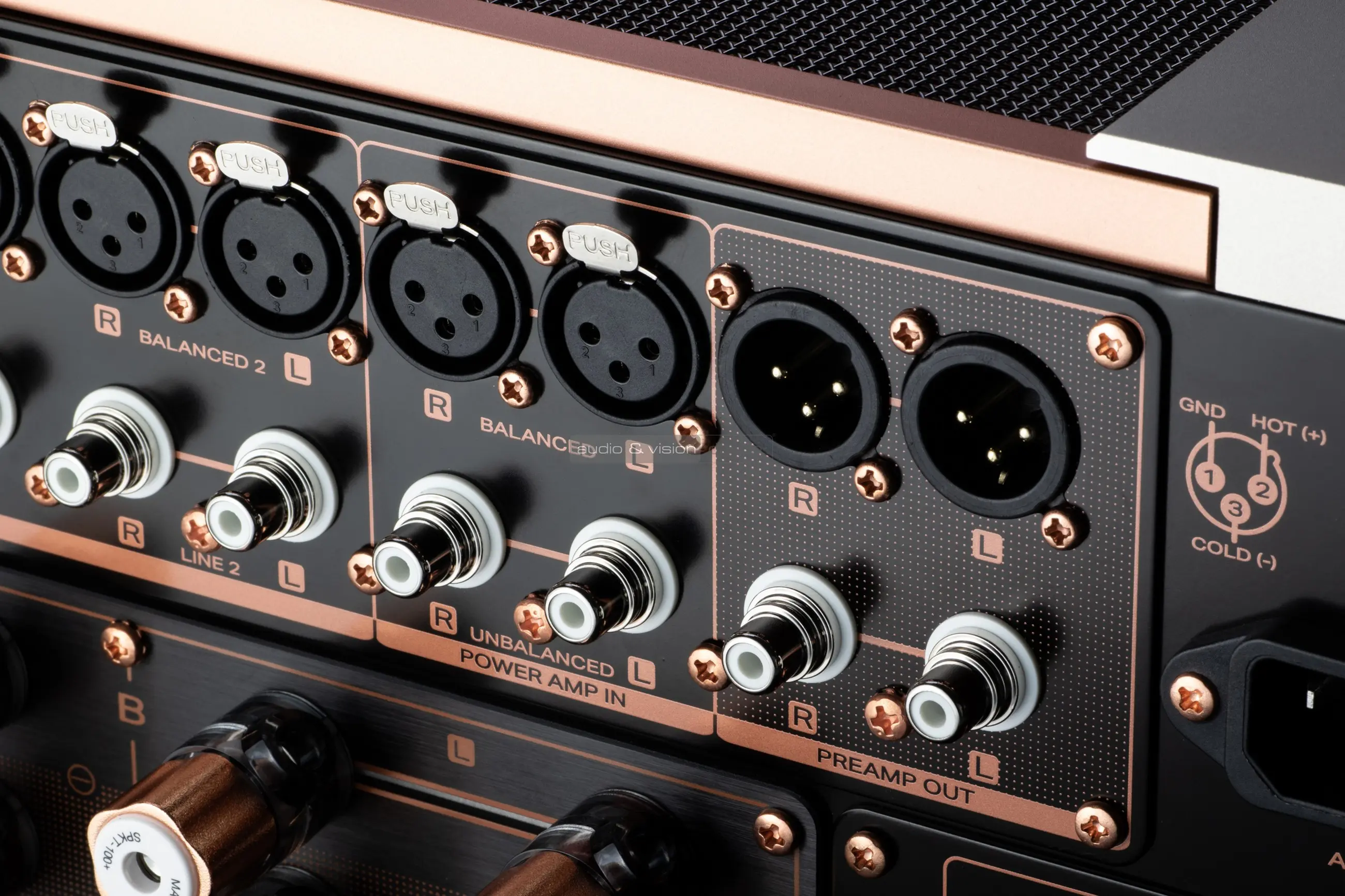 Bemenetek tekintetében két XLR, három RCA és egy magas minőségű phono közül lehet választani, utóbbi MM és MC hangszedőkkel egyaránt kompatibilis.