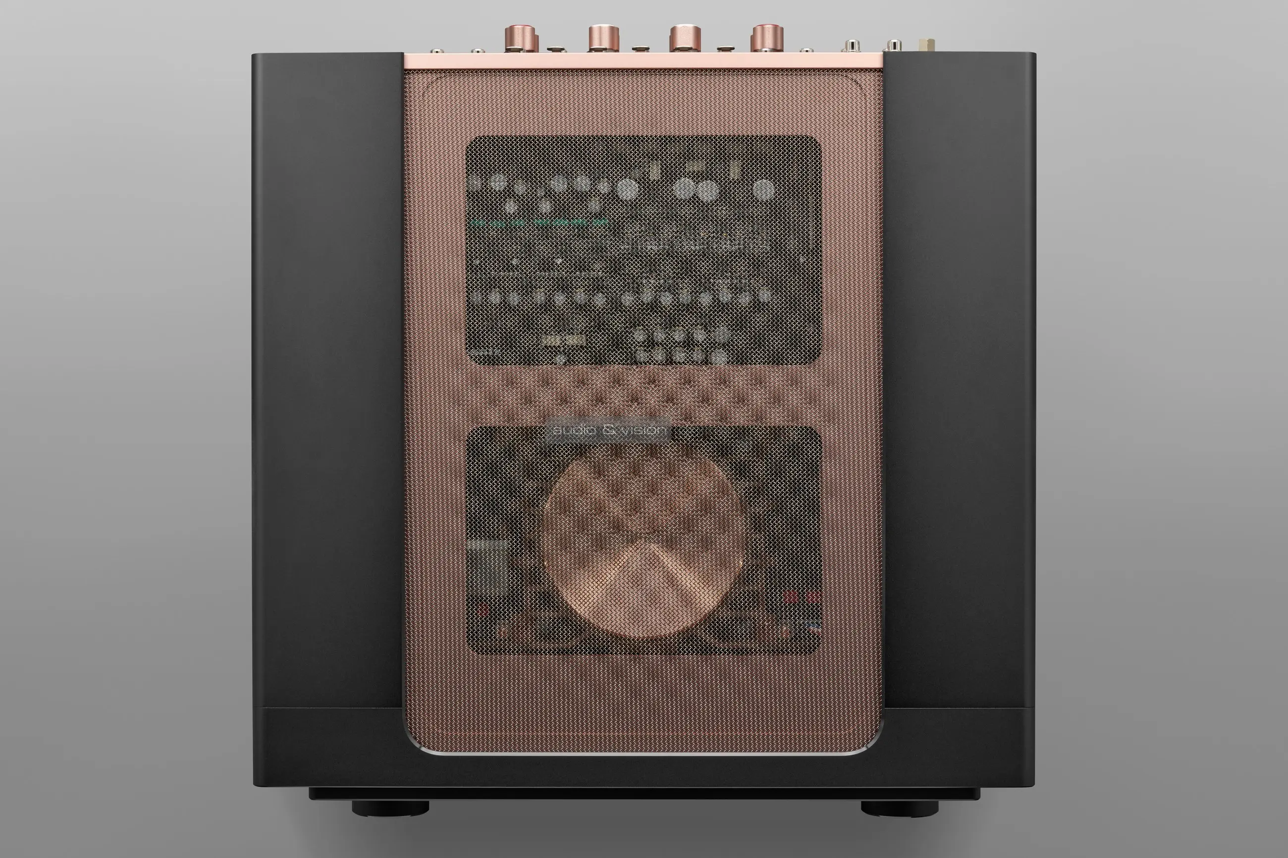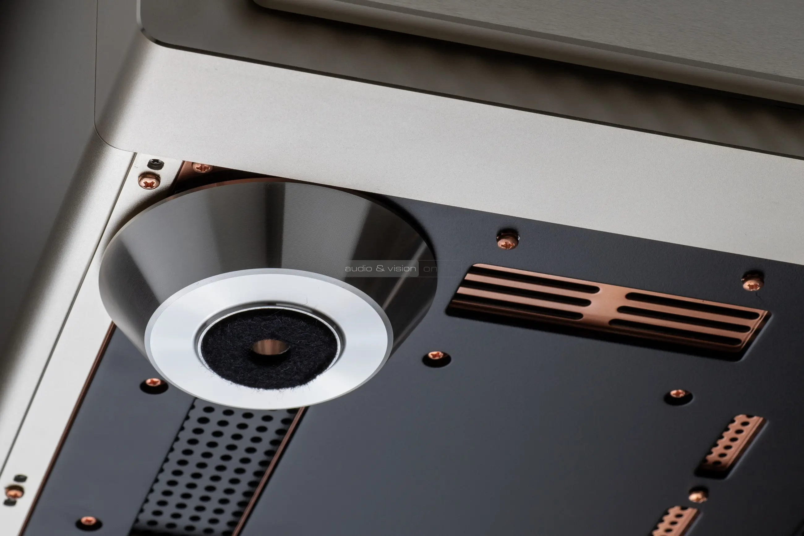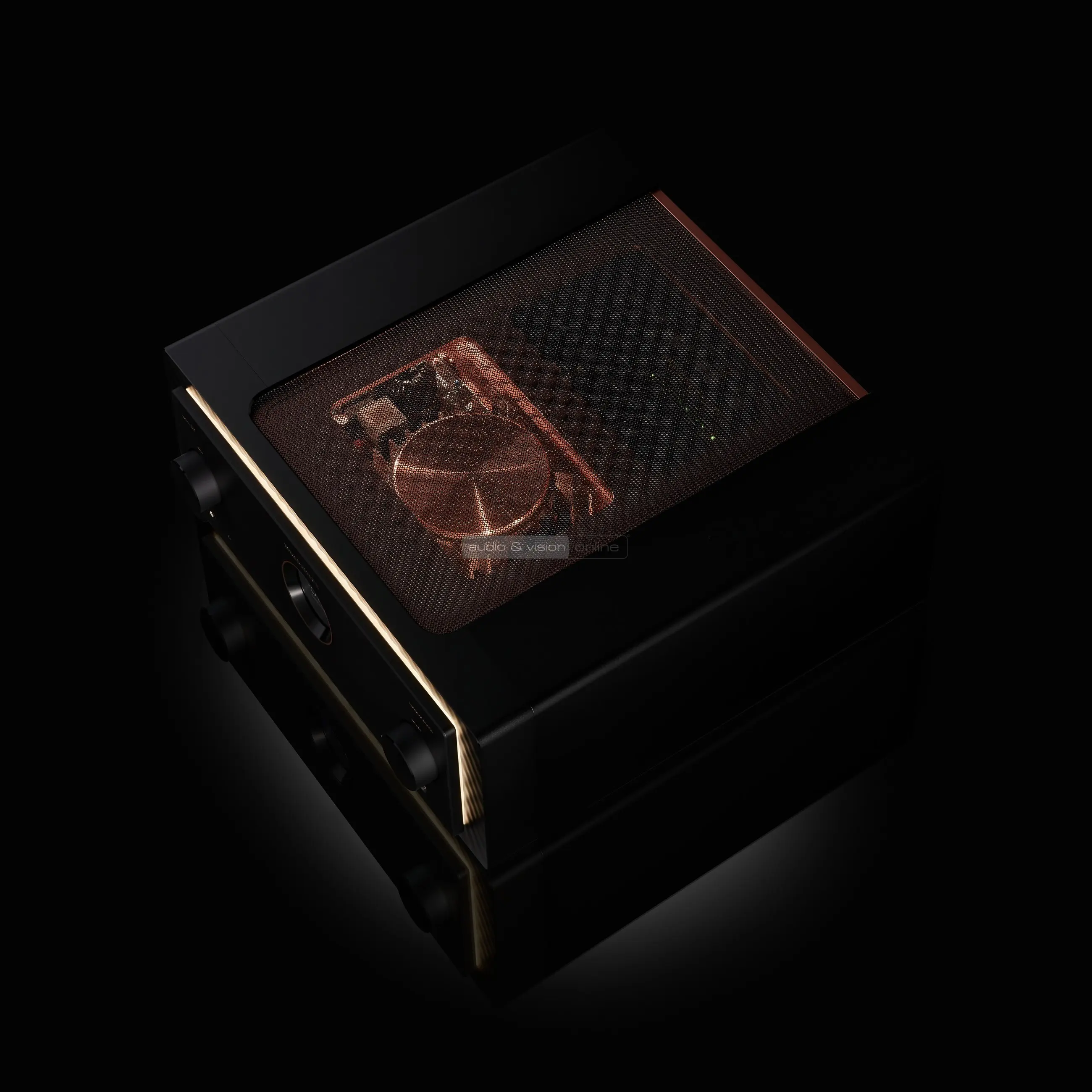 Egyik legnagyobb látványeleme a fedlapon lévő, hanghullámra emlékeztető formájú rács, amelyen keresztül belátást nyerünk az ultraalacsony rezonanciájú ház belsejébe. Utóbbi rejtett hangulatvilágítást kapott épp úgy, mint az extrudált alumínium előlap, melynek közepén egy OLED kijelző mutatja az aktuális bemenetet és jelszintet (hangerő). Tetszés szerint minden világító rész elsötétíthető, kikapcsolható.