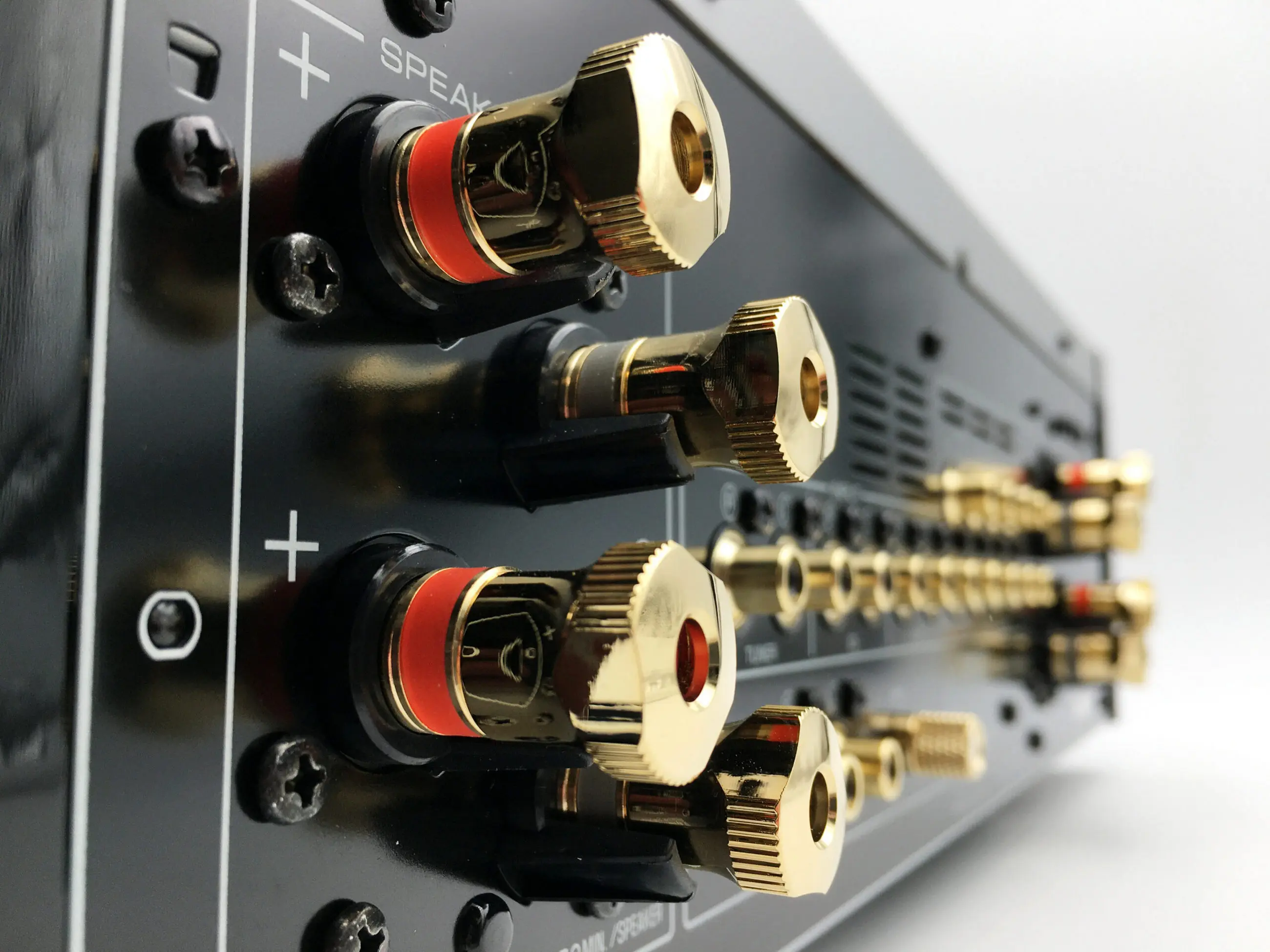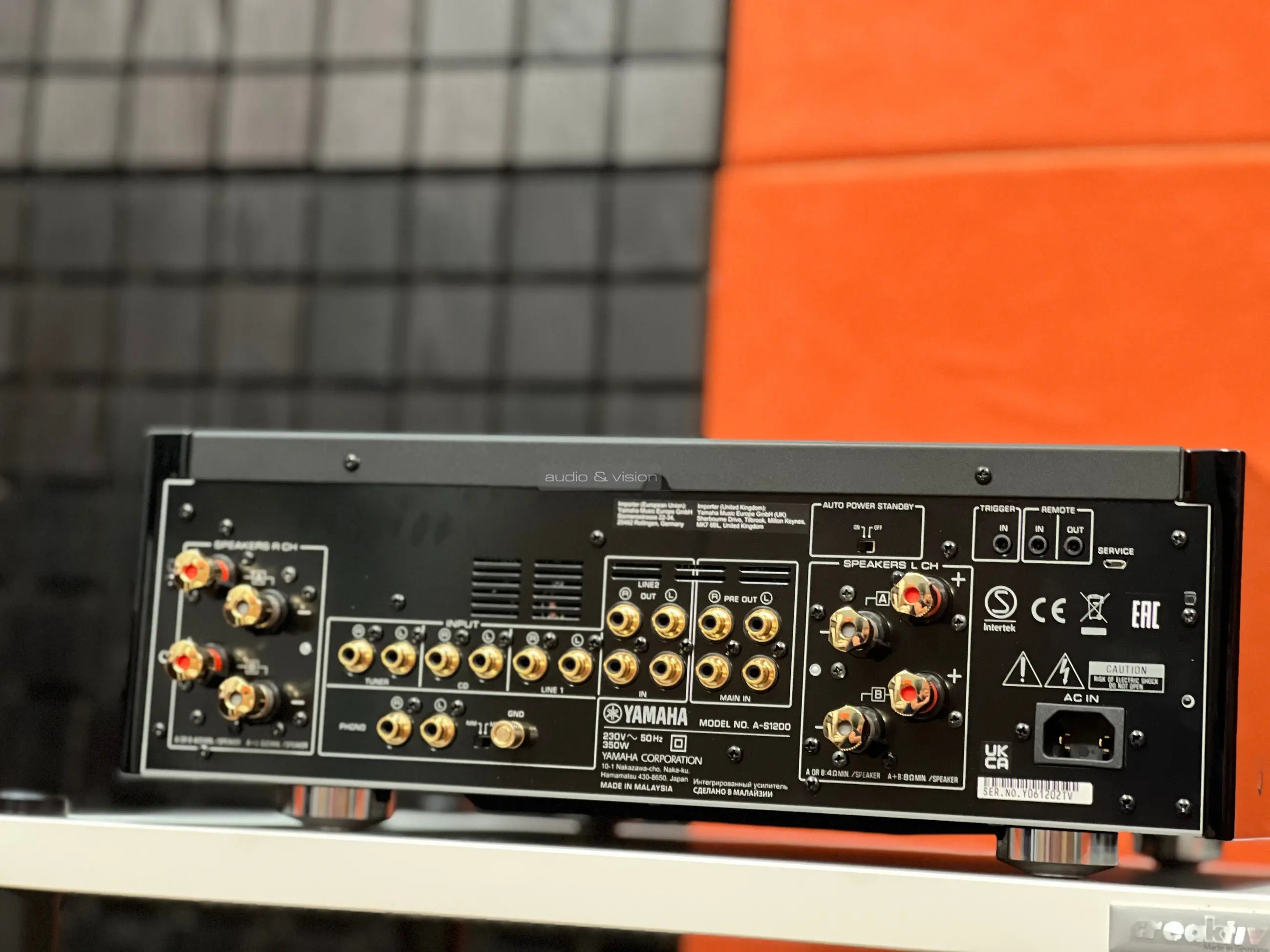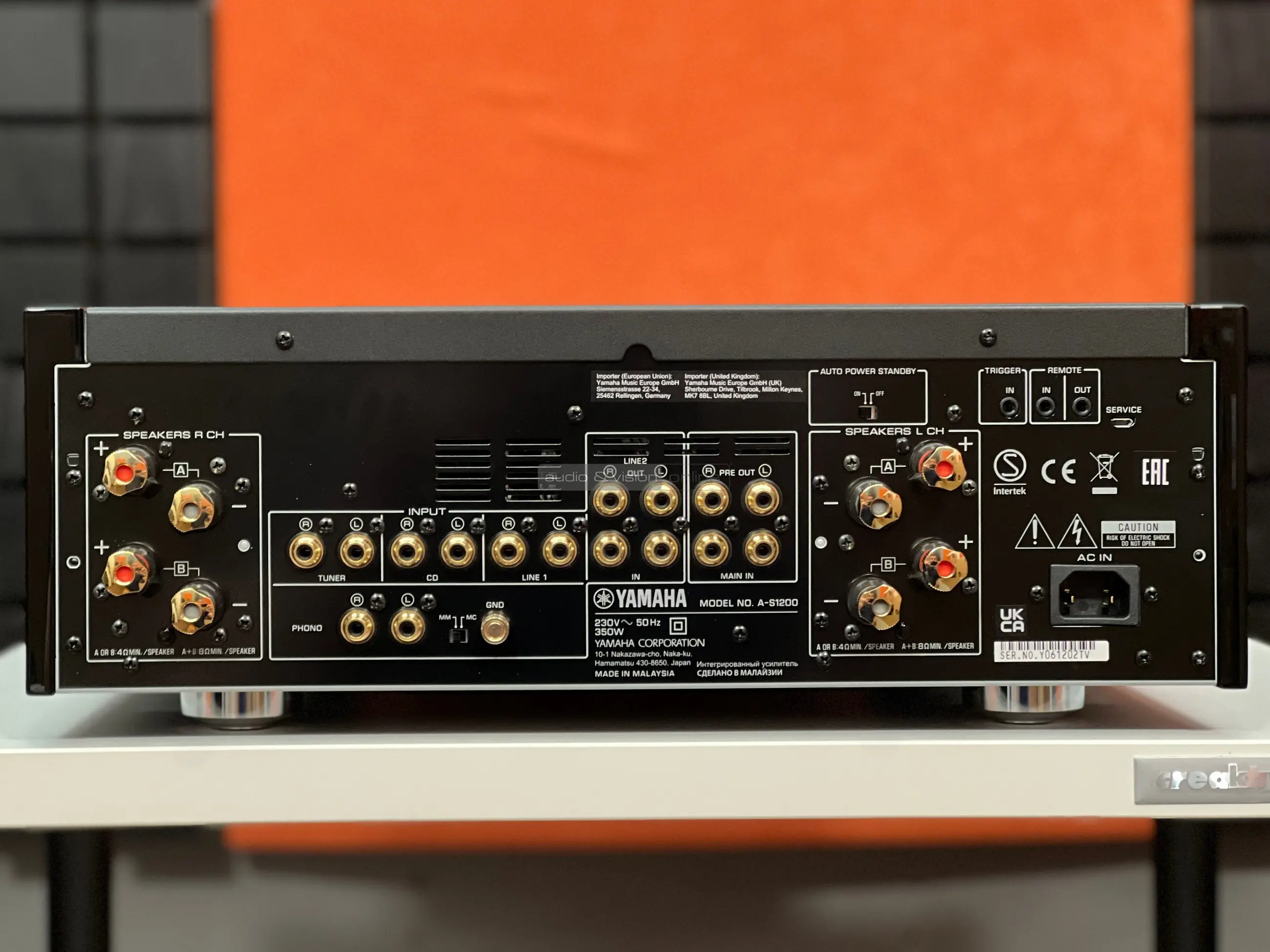 Az A-S1200 hátoldalán az igényesség folytatódik, ami először talán a hangfalkimeneteken nyilvánul meg, amelyek egymástól távol találhatók, a duál monó felépítésnek köszönhetően. A dupla erősítésre alkalmas csatlakozók tiszta sárgarézből készültek és banándugót is fogadnak, amennyiben valaki csupasz drótvéget vagy sarut alkalmaz, könnyítést jelentenek a bemeneteken található vájatok. Közöttük foglalnak helyet a be- és kimenetek, amelyek aranyozottak, minőségi kivitelezésűek, és szintén megfelelő távolság van köztük ahhoz, hogy könnyen csatlakoztathassuk a kábeleket. Az A-S1200 a CD, tuner és vonalszintű bemenet mellett phono-t is kínál, ami MM és MC hangszedőkhöz is illeszkedik. A készülék elő és végfok szekcióját külön is használhatjuk, illetve párosíthatjuk így más erősítővel, a saját rendszerbe illesztéshez trigger és remote aljzatok állnak a rendelkezésünkre. A szerviz módot mini USB segítségével kínálják nekünk, és bevetésre került a mostanában szinte elengedhetetlen kapcsoló, aminek aktiválásával a készülék egy idő után teljesen kikapcsol, ha nem kap jelet. A tápkábel a készülékhez adott, ahogyan a cserének a lehetősége is, ami erősen ajánlott.