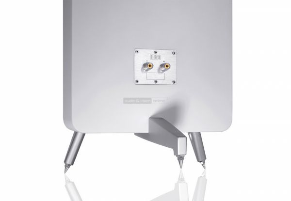A masszív, MDF-ből készült doboztest alumínium tüskéken áll, melyeknek vége igény szerint gumilábra is cserélhető. A kettős reflexnyílás lefelé, a padló irányába néz.
