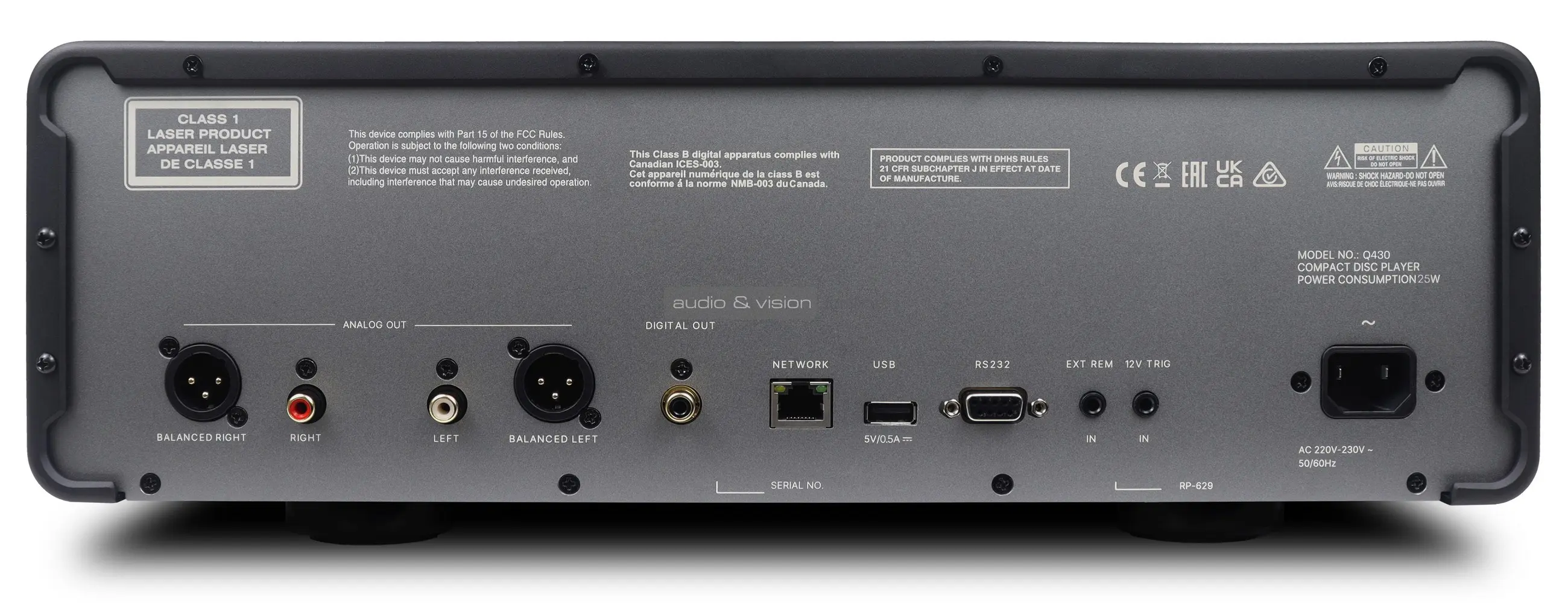 A sorozat másik tagja, a Q430 CD-lejátszó a fizikai adathordozók szerelmeseinek készült, lebegő tálcás mechanizmussal a vibrációk ellen, valamint egy nyolc csatornás ES9028PRO DAC topológiával, amely differenciális módban üzemelve ígér kivételes tisztaságot és tűpontos sztereó képalkotást.