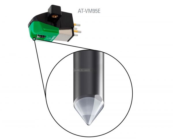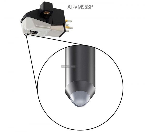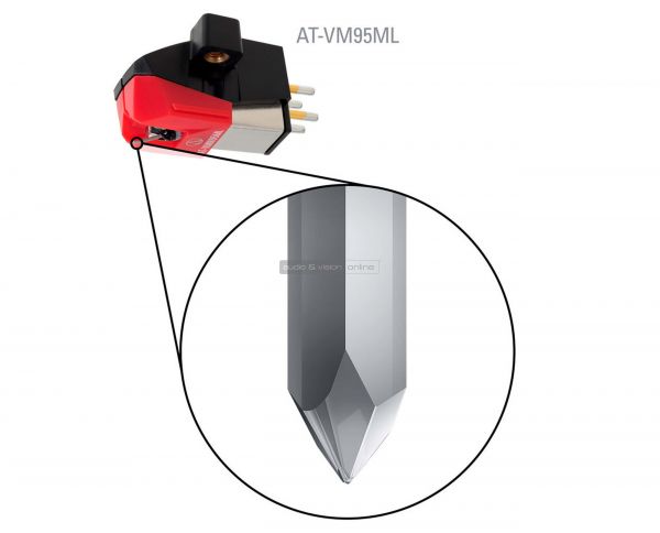 A piros színű, és az előzőekhez képest lényegesen magasabb árfekvést képviselő VM95 ML a ma kapható egyik legjobb hangminőségű tűt kapta meg. Ez az Audio Technica saját fejlesztésű, MicroLinear nevű tűje, ami egy darabból csiszolt és kiemelkedő, 1000 órás élettartamot ígér - cserébe ára bőven egy áruházi lemezjátszóé felett van.