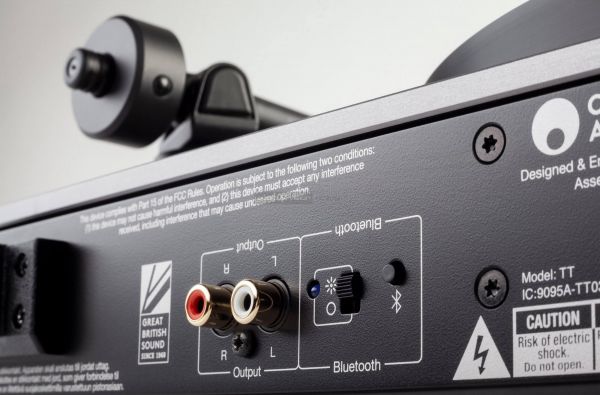 Emellett egy RCA kimenetet találtunk, viszont ez előerősített, mivel az Alva TT beépített (!) MC előerősítővel rendelkezik, amit a gyári hangszedőhöz optimalizáltak. Alapvetően idegenkedünk az ilyen megoldásoktól, hiszen bár kényelmes, nem teszi lehetővé más phono előfok használatát, így lemezjátszónk hangja nem javítható, karaktere nem változtatható másmilyen MC phono egység használatával. Az Alva TT árát is figyelembe véve azonban felmerült bennünk a lehetőség, hogy a beépített egység is szólhat jól - nemsokára olvasóinkat is beavatjuk tapasztalatainkba ennek kapcsán. A hátlapon, mindezeken túlmenően még egy tolókapcsolót találtunk, ami a Bluetooth be- és kikapcsolására szolgál.