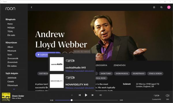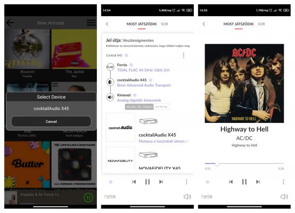A kezelés pofonegyszerű és logikus, élmény tekergetni és nyomkodni a gombokat, a látványos kijelzőn pedig követni a változásokat, sokszor csak azért kezdtük el váltogatni a menüpontokat, hogy mint lelkes kisfiú gyönyörködjünk a látványban. A Roon és Jriver is hiba nélkül kezeli a Coctail Audio X45-öt, telefonról is kezelhetjük a saját (elég fapados) szoftverével, vagy az előbb említett lejátszók telefonos appjaival.