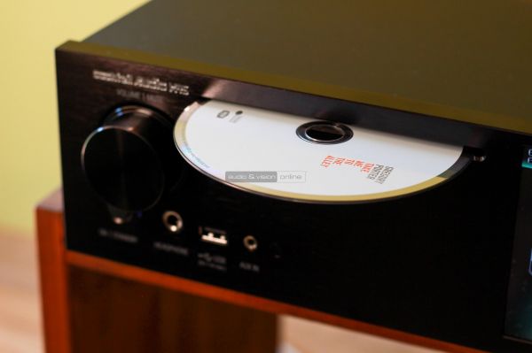 Bal oldalon van eldugva a forgatógomb alá a ki-bekapcsoló, a 6,3 mm-es fejhallgató Jack aljzat, egy USB és egy AUX bemenet az infravörös távirányító érzékelője társaságában. Felette van a CD mechanika nyílása, ami - ha a fekete verziót választjuk - alig vehető észre. A másik (jobb) oldalon - már persze ha szemből nézzük a készüléket - a bemenet, a vissza, a Stop és a Menü lapos és kerek mikrokapcsolós, szintén (nyomkodás közben) perverz élvezetet biztosító nyomógombja várja a leendő tulajdonost.