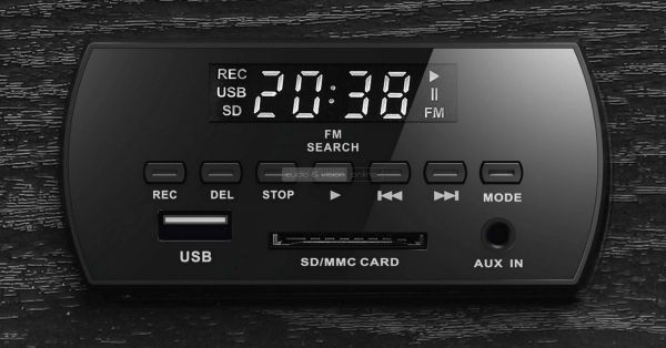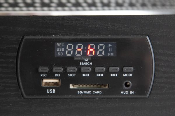 A készülék MDF házat kapott, ami igényes megoldás az olcsó műanyaghoz képest, digitális kijelzője és vezérlőgombjai elől középen helyezkednek el. Ugyanitt még USB A bemenetet, SD kártya nyílást és a bekapcsoló gombot találjuk.