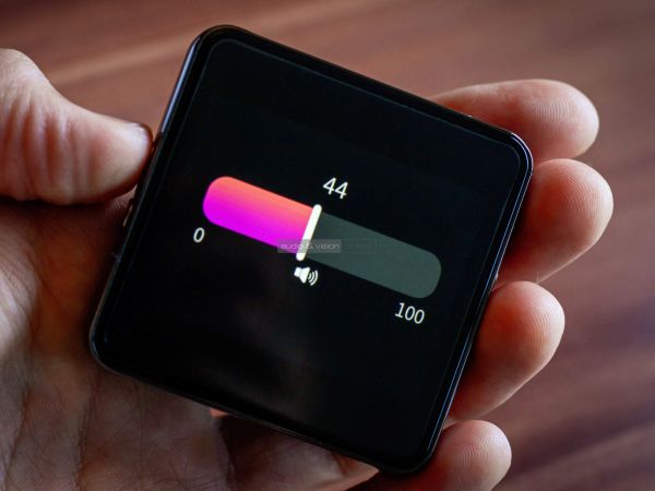 A parányi méret miatt csak szegmentált, összevont karakteres billentyűzeten keresztül tudtuk beírni a szöveget (csurig telített, többszáz albumot tartalmazó memóriakártyával komoly kihívás lett volna beírni egy előadót vagy zeneszámot). Emiatt kissé döcögős volt a WiFi jelszó beírása, jóllehet, azt csak egyetlen alkalommal kellett megadni. Ami kicsit több türelmet igényelt, hogy a kijelző az apró virtuális gombok miatt olykor nem érzékelte elsőre az érintésünket. Lehet, hogy ezen még segíteni fog egy szoftverfrissítés?
