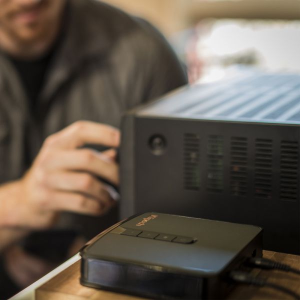 A cigarettásdoboznál alig nagyobb Gate egy klasszikus zónajátszó, se több, se kevesebb. Apró, fekete műanyag teste mindössze egy 3,5 mm-es analóg sztereó Jack ki és bemenetet tartalmaz, kiegészítve egy szervizes célokra szolgáló USB porttal és szinkronizálást segítő gombbal. Ez a Stream család legegyszerűbb, ezáltal leginkább univerzális tagja is, mivel mi dönthetjük el, hogy milyen hangrendszert vértezzünk fel DTS Play-Fi képességekkel.
