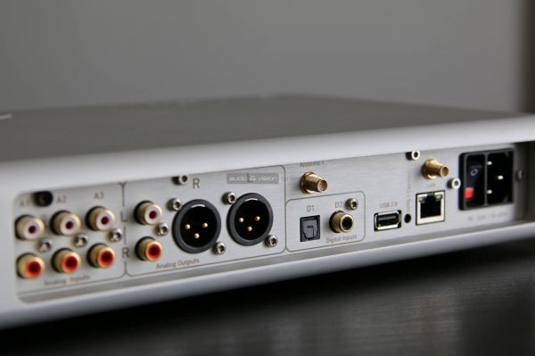 Elején nagyméretű kijelző, hangerőállító potméter, alatta 6,3 mm-es fejhallgató Jack kimenet, a CD lejátszó nyílása, illetve tetején elöl a ki-bekapcsológomb található, semmi más. A készüléket megfordítva mindjárt más a helyzet: katonás rendben sorakoznak a különféle digitális és analóg be- és kimenetek, a készülék méretéhez képet kifejezetten nagy mennyiségben.