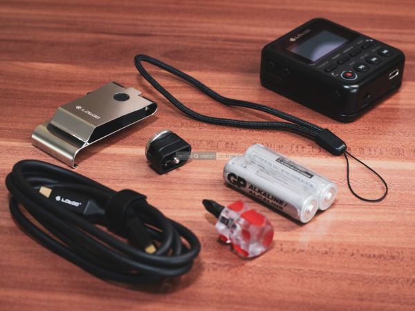 Ezeken kívül található benne egy fém övcsat és egy mini csavarhúzó, mellyel az övcsatot a PAW 1 hátoldalára lehet rögzíteni. Végül, de nem utolsósorban egy kábel tekerő is része a csomagnak, amelybe külső mikrofonkábel akasztható be.